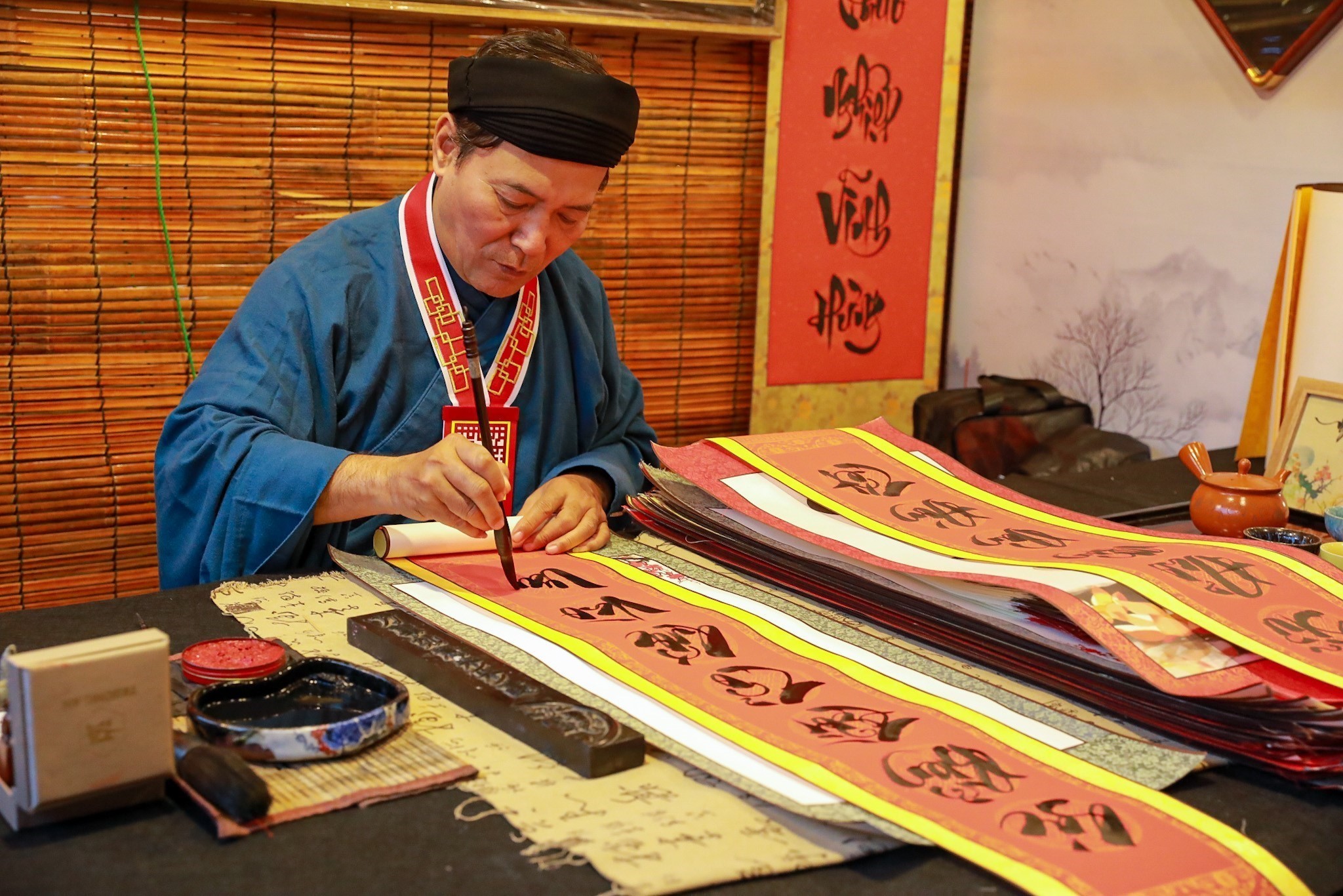 35 nhà hoạt động thư pháp tham gia Hội chữ Xuân Bính Ngọ 2026. Ảnh: Khánh Hoà - TTXVN