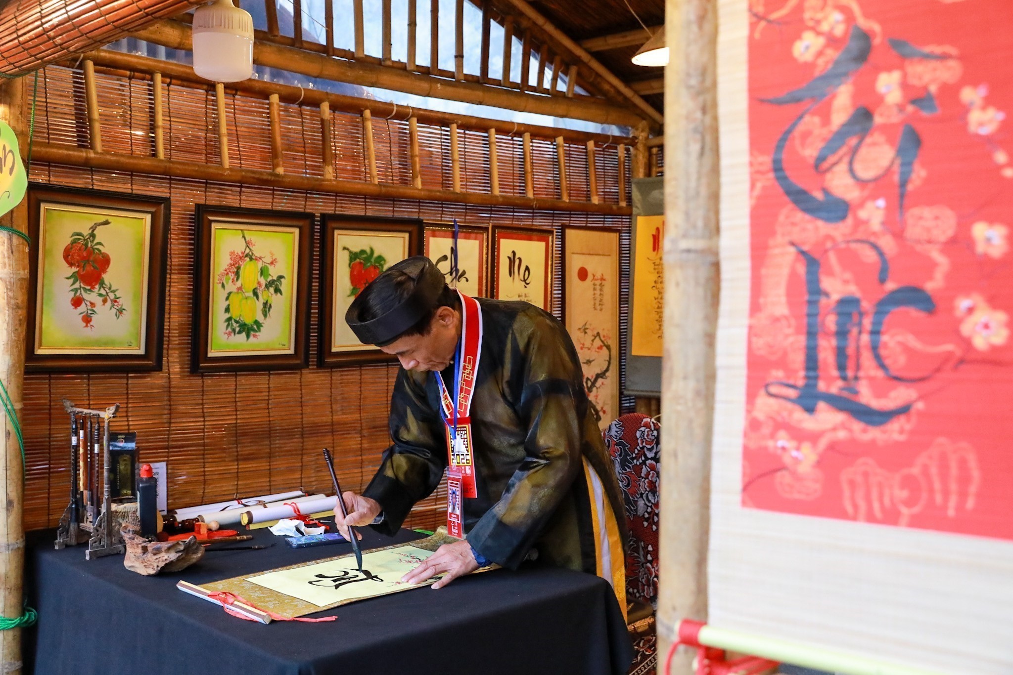 Điểm nhấn xuyên suốt của Hội chữ Xuân Bính Ngọ 2026 là hoạt động xin chữ đầu năm tại 35 gian lều thư pháp. Ảnh: Khánh Hoà - TTXVN