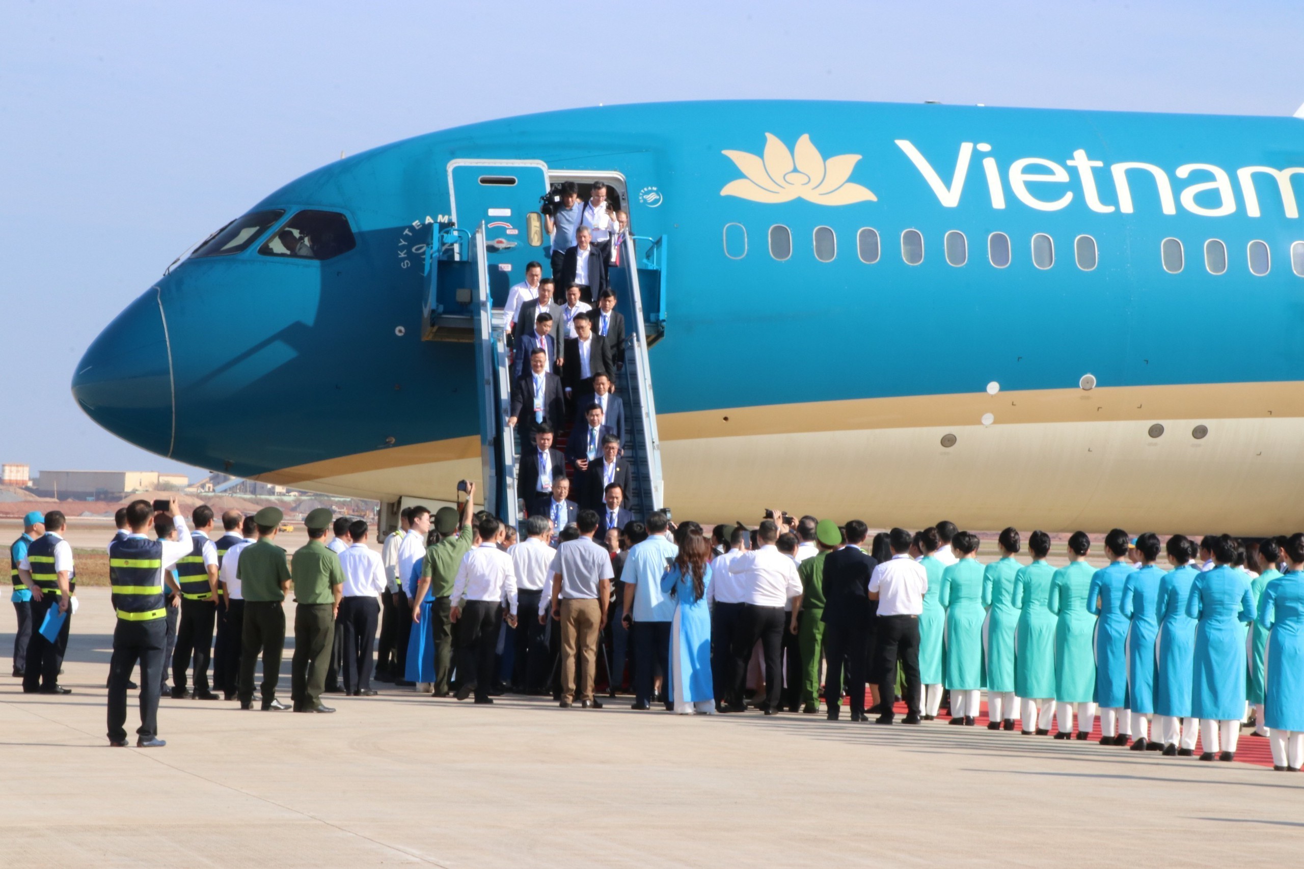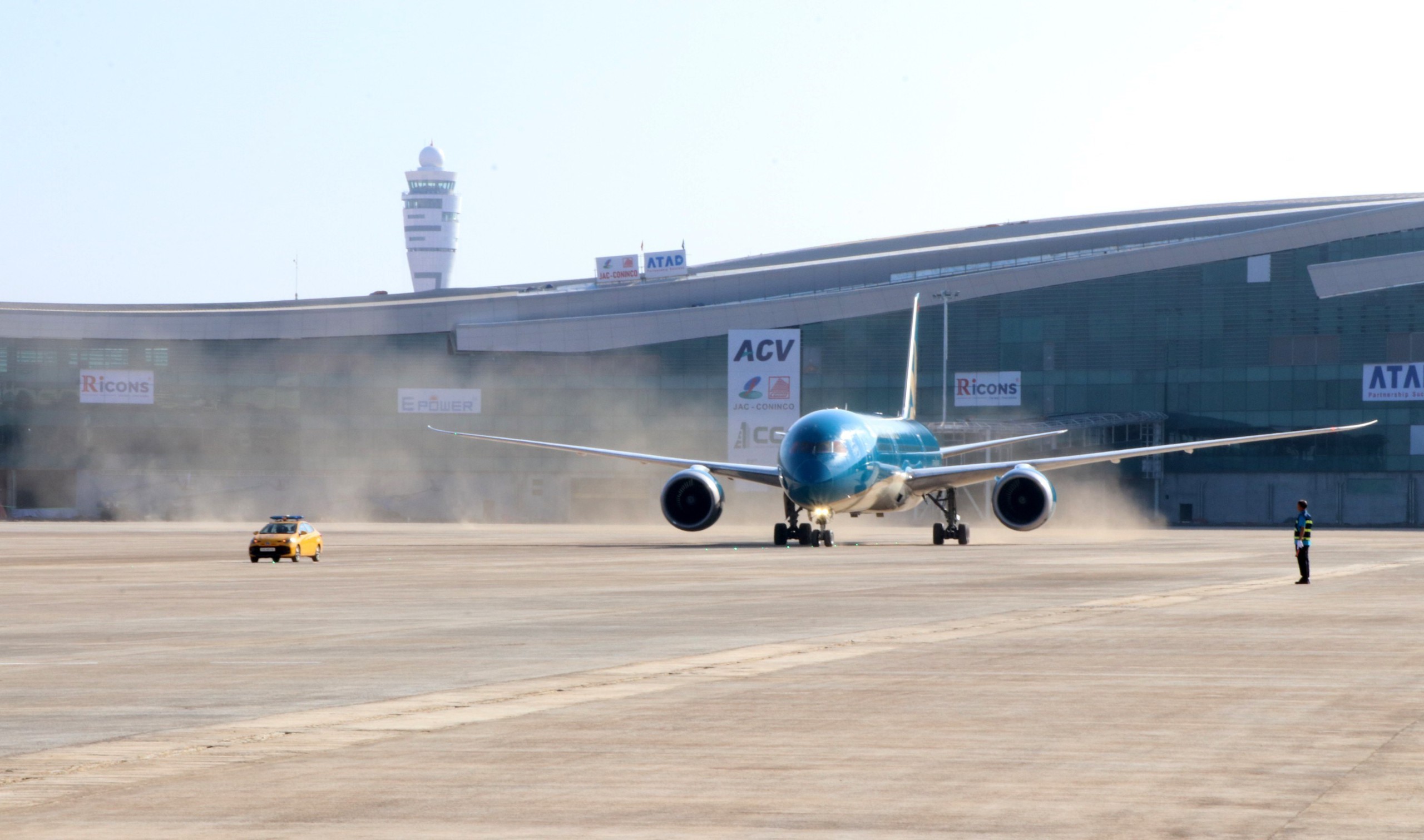 Đúng 8 giờ 20 phút, máy bay Boeing 787 của Hãng hàng không quốc gia Việt Nam – Vietnam Airlines chở theo lãnh đạo Đảng, Nhà nước cùng đại diẹn các bộ, ngành đáp xuống đường băng số 1, chính thức khai trương vận hành Cảng hàng không quốc tế Long Thành.