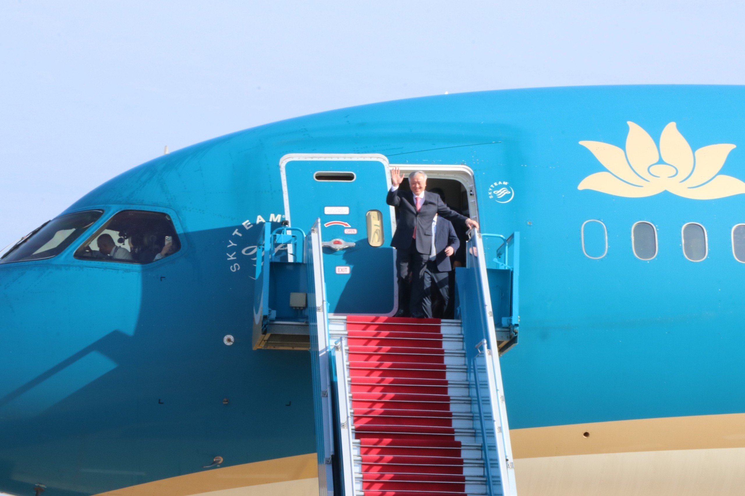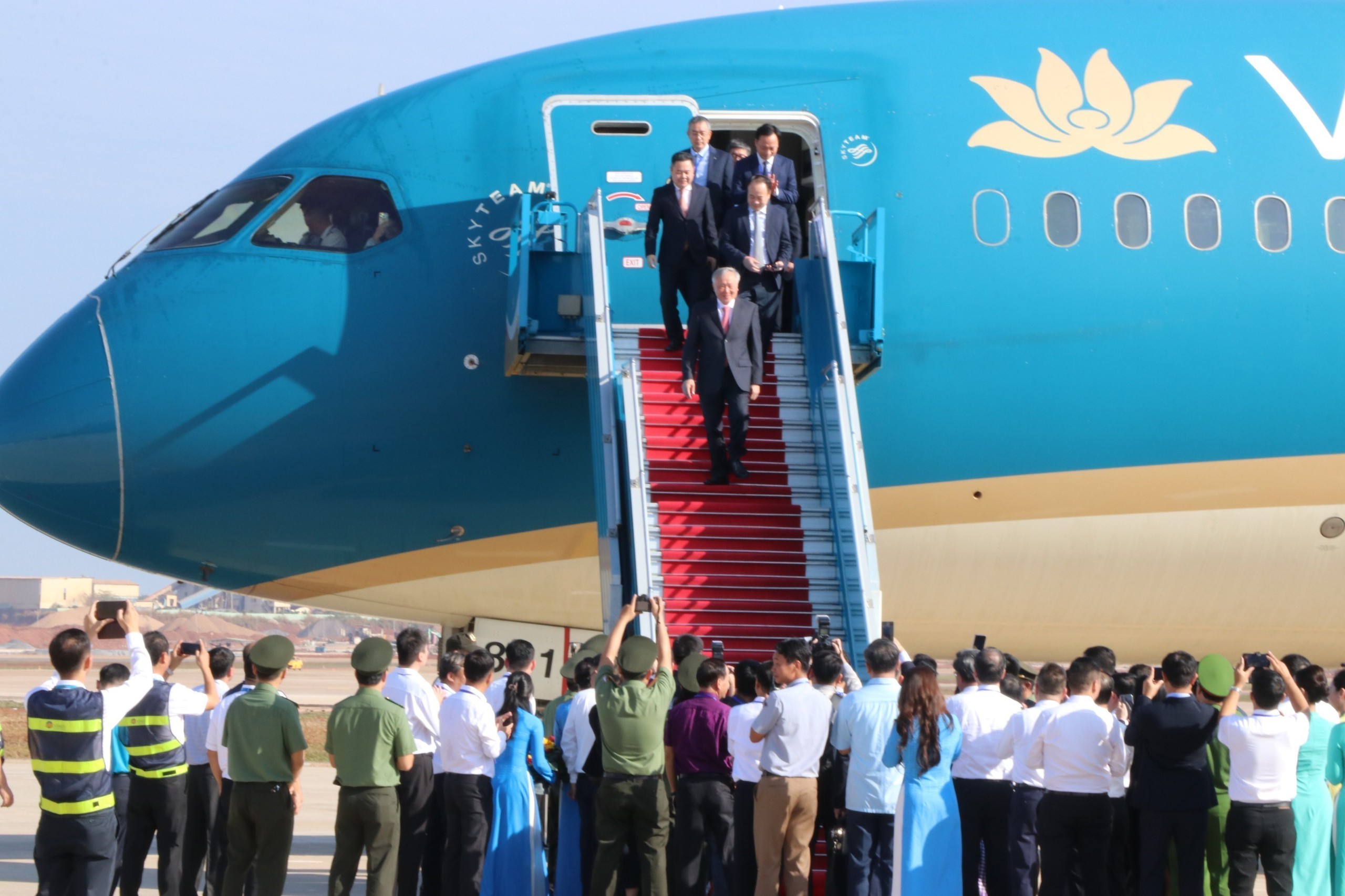 Ủy viên Bộ Chính trị, Phó Thủ tướng Thường trực Nguyễn Hòa Bình trên chuyến bay Boeing 787 của Hãng hàng không quốc gia Việt Nam - Vietnam Airlines - đáp xuống sân bay Long Thành. Ảnh: Sỹ Tuyên - TTXVN