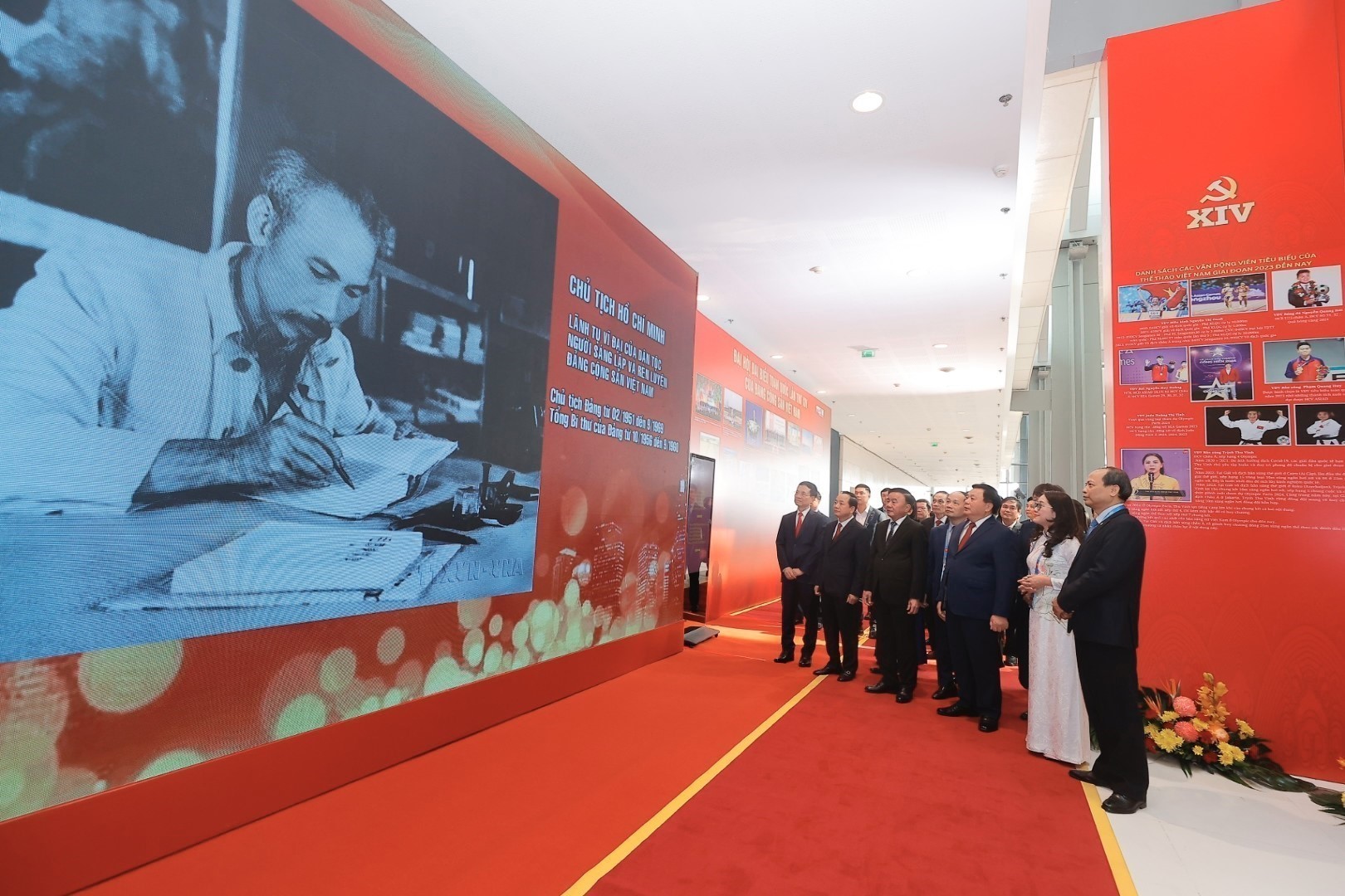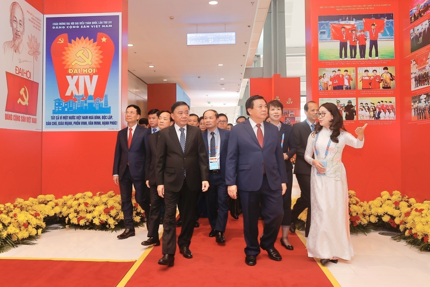Trước đó, tại buổi Lễ, các đại biểu đã tham quan Trưng bày sách, báo phục vụ Đại hội XIV và trưng bày ảnh “Dưới cờ Đảng, đất nước tiến vào kỷ nguyên mới”; triển lãm trưng bày các tài liệu lưu trữ qua các kỳ Đại hội với chủ đề: “Từ Đại hội đến Đại hội”; phát hành đặc biệt bộ tem bưu chính “Chào mừng Đại hội đại biểu toàn quốc lần thứ XIV của Đảng”.