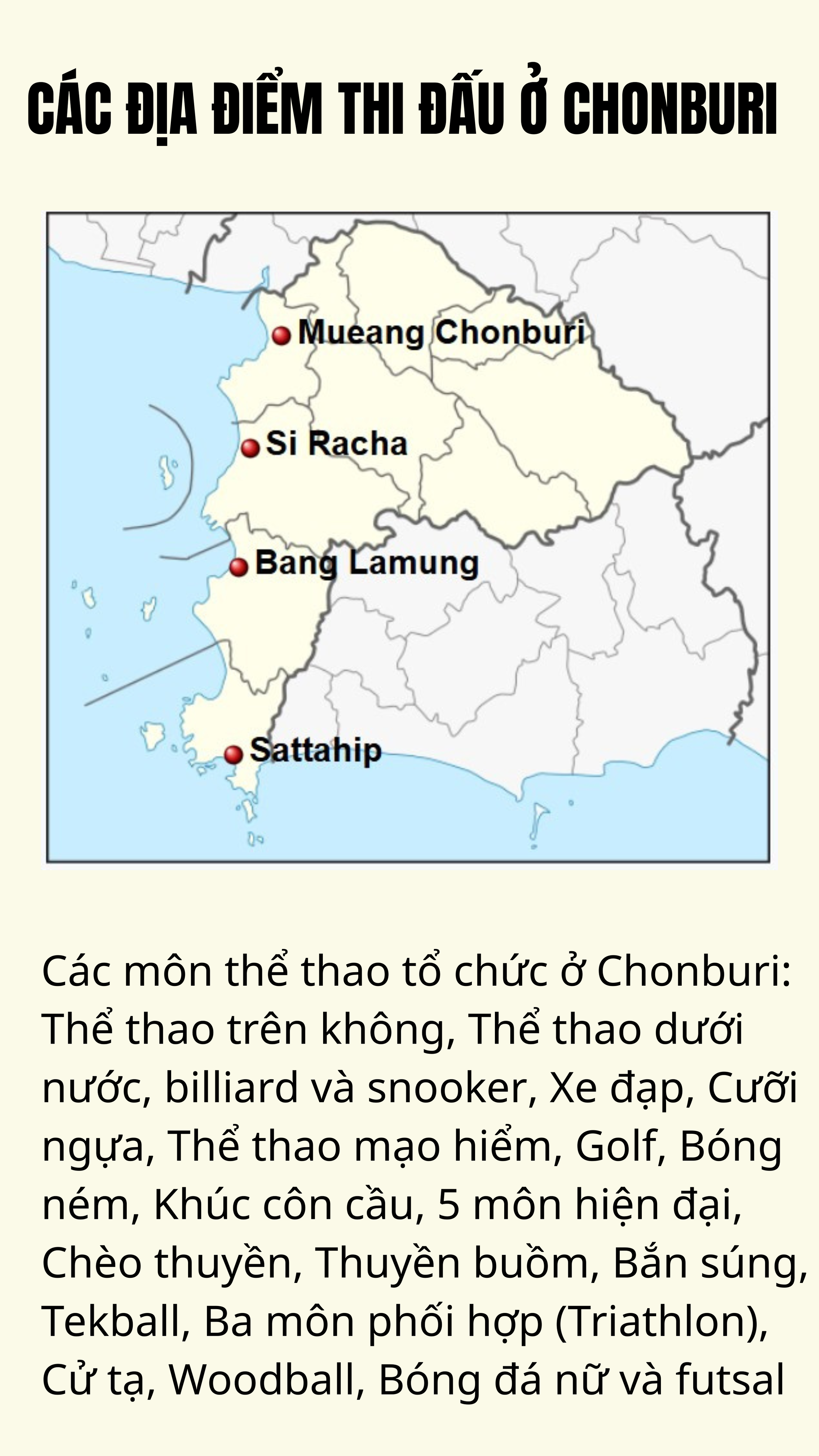Chonburi được chọn là một trong các thành phố đăng cai SEA Games lần thứ 33 nhờ tiềm năng toàn diện, bao gồm cơ sở hạ tầng thể thao và giao thông đạt chuẩn quốc tế, đi kèm các tiện ích đầy đủ cho vận động viên và khán giả.