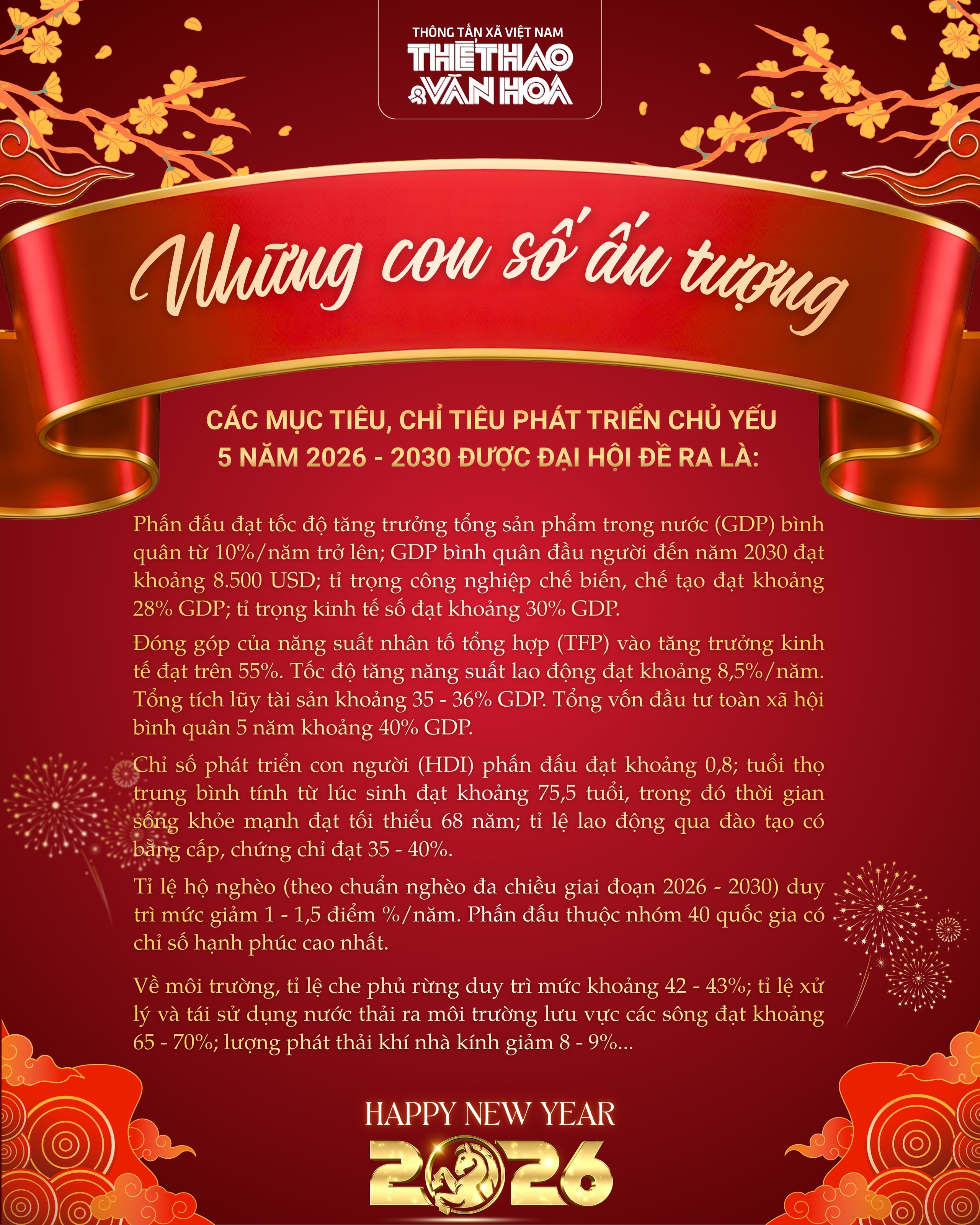 Những chỉ tiêu phát triển chủ yếu cho giai đoạn 2026 - 2030 được Đại hội đề ra cho thấy khát vọng tăng tốc rất rõ ràng.