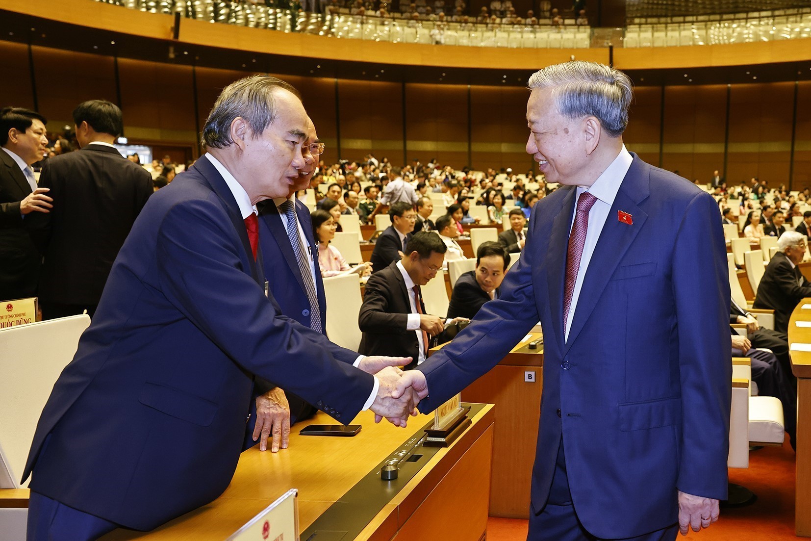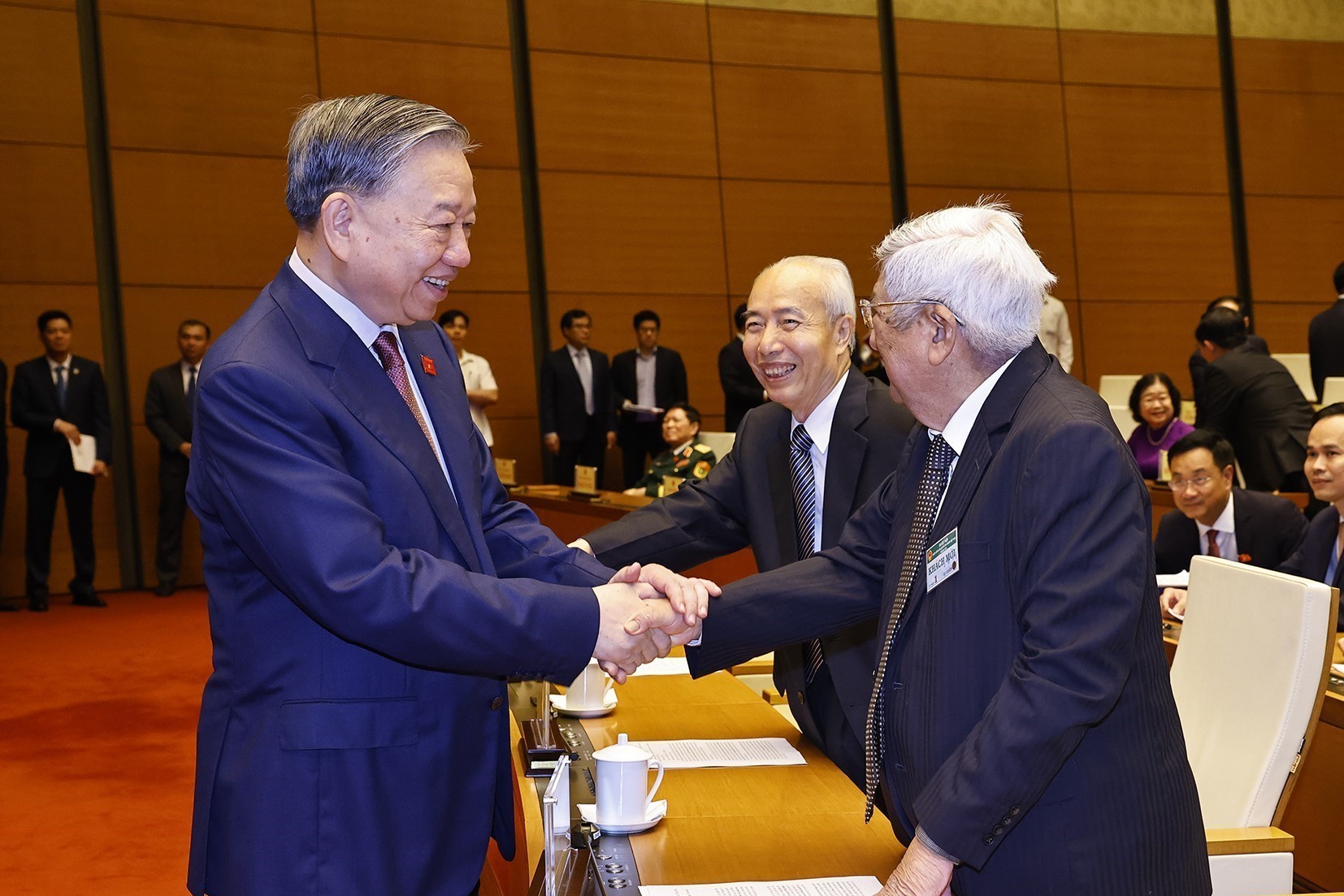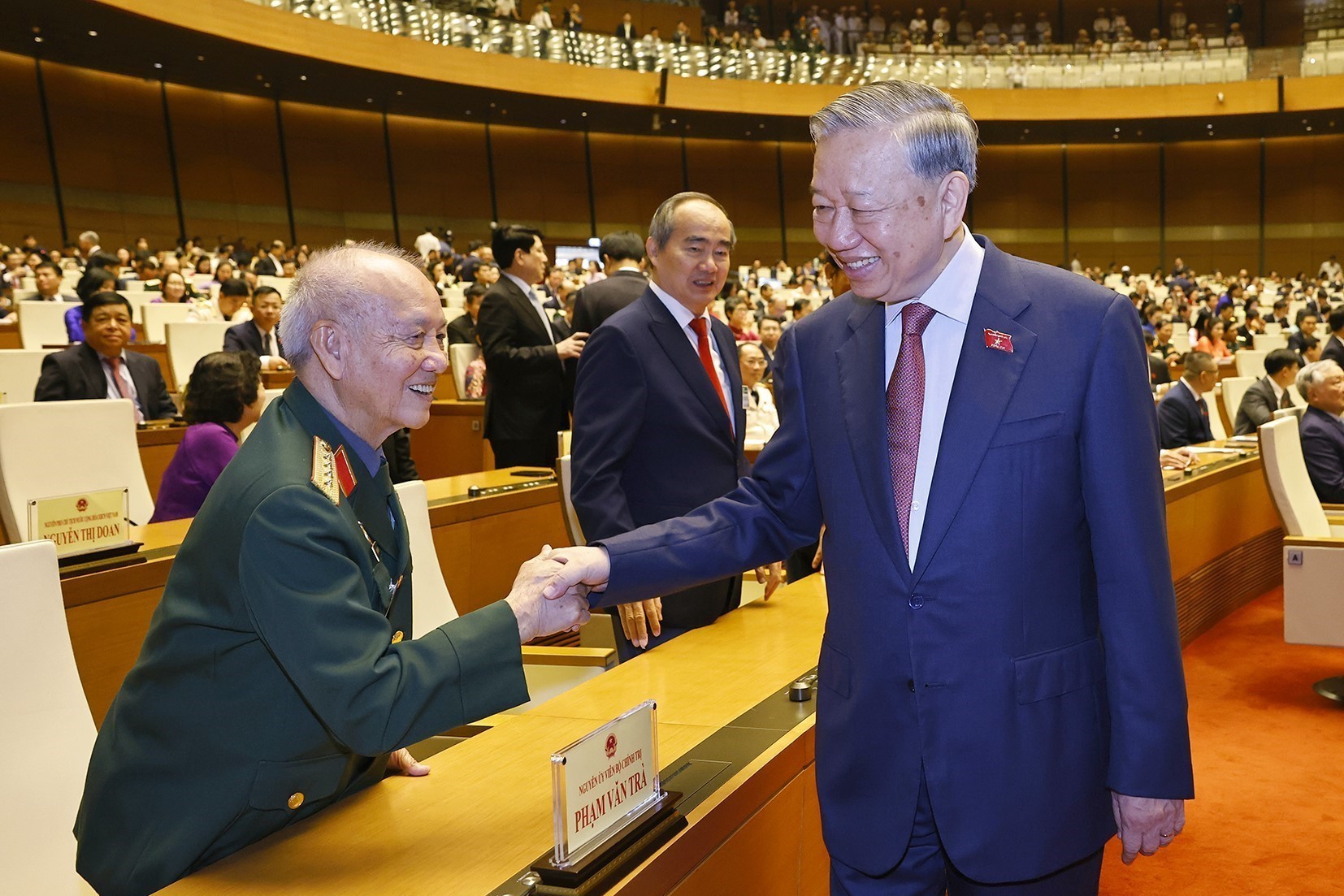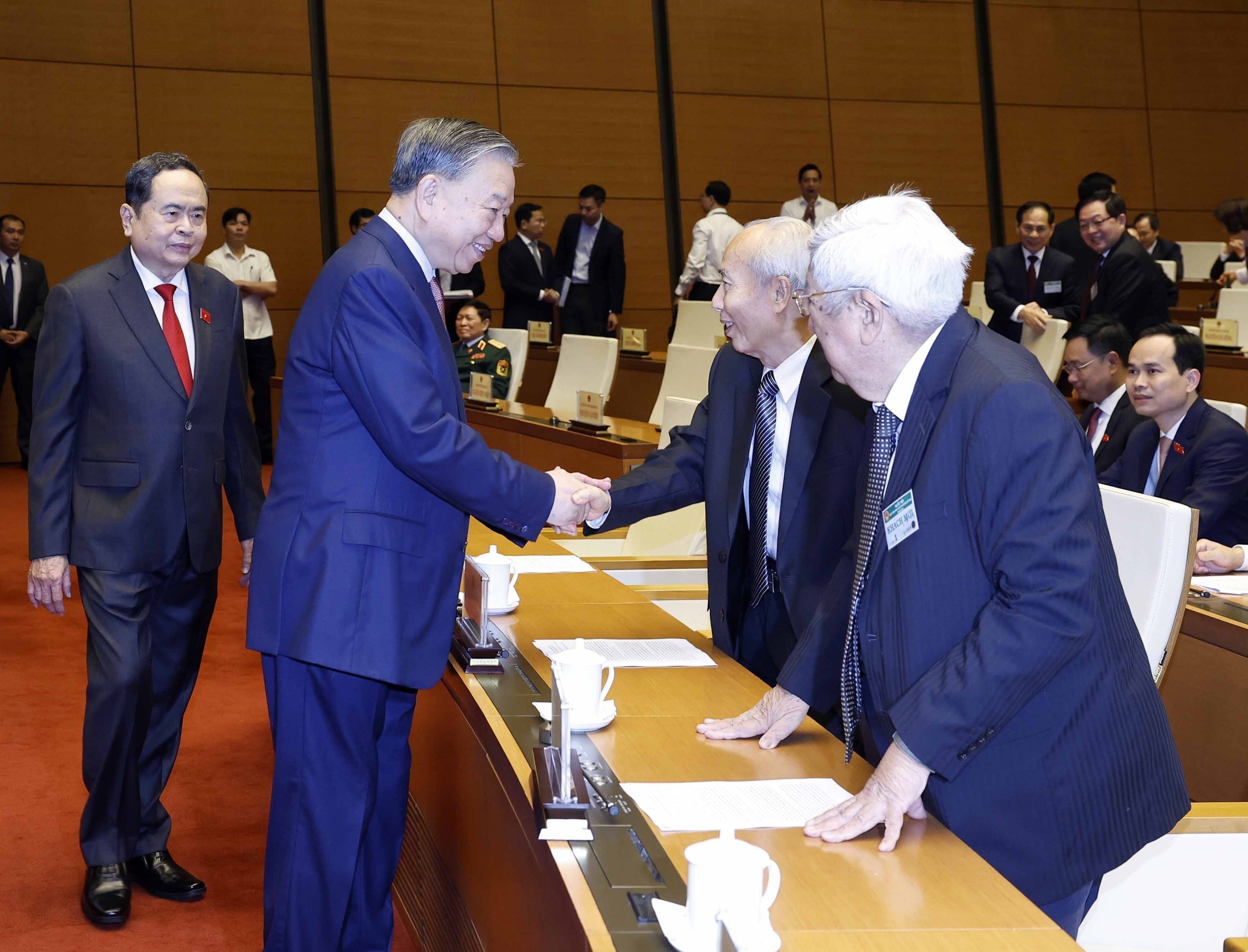 Tổng Bí thư Tô Lâm với các đồng chí nguyên lãnh đạo Đảng, Nhà nước dự khai mạc Kỳ họp thứ Nhất, Quốc hội khóa XVI