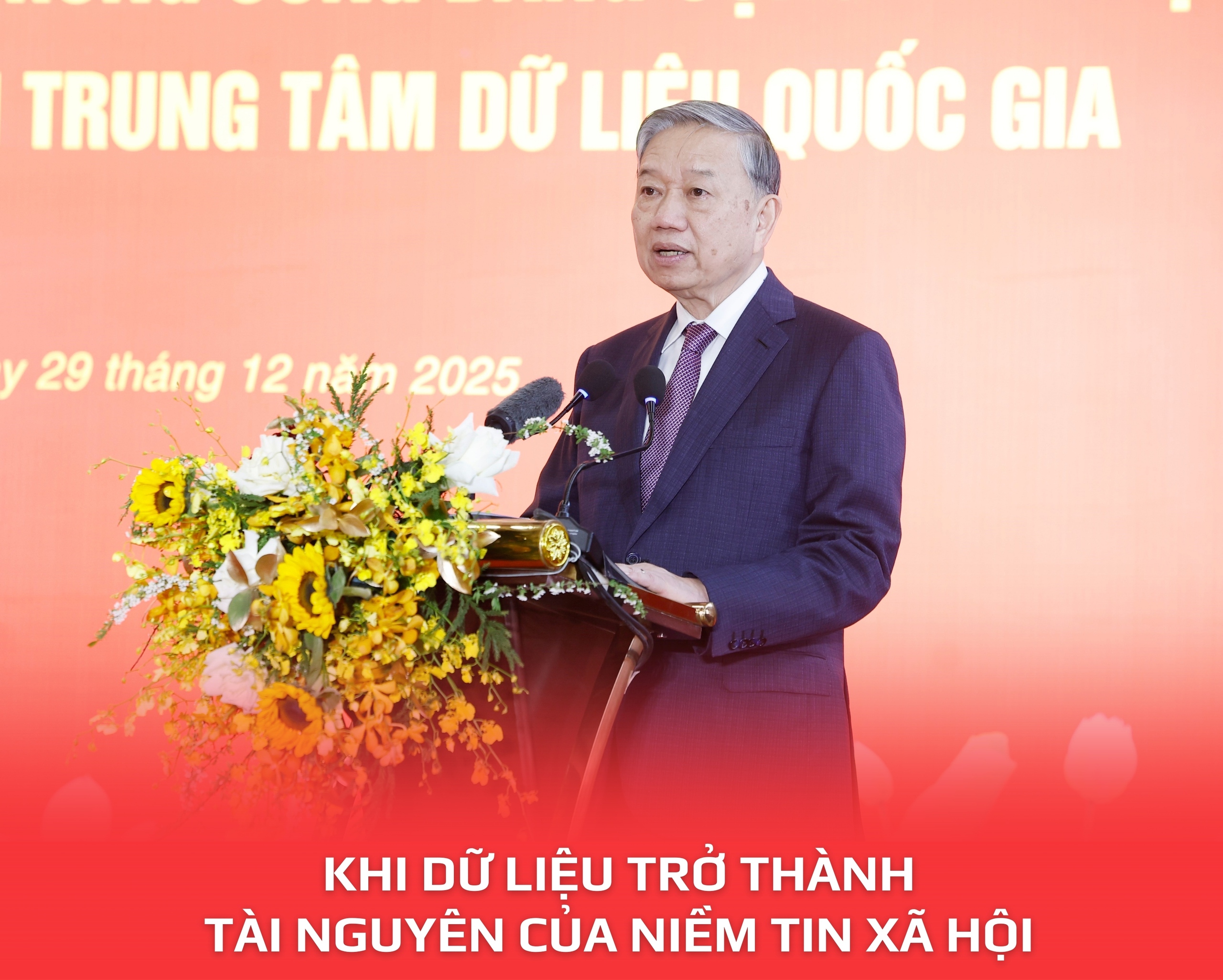 Tổng Bí thư Tô Lâm yêu cầu, xây dựng Trung tâm Dữ liệu quốc gia thực sự trở thành “trái tim” của nền kinh tế dữ liệu, xã hội dữ liệu; là “bộ não” phục vụ trực tiếp, hiệu quả công tác lãnh đạo, chỉ đạo, điều hành của Đảng, Nhà nước và hoạt động của toàn xã hội