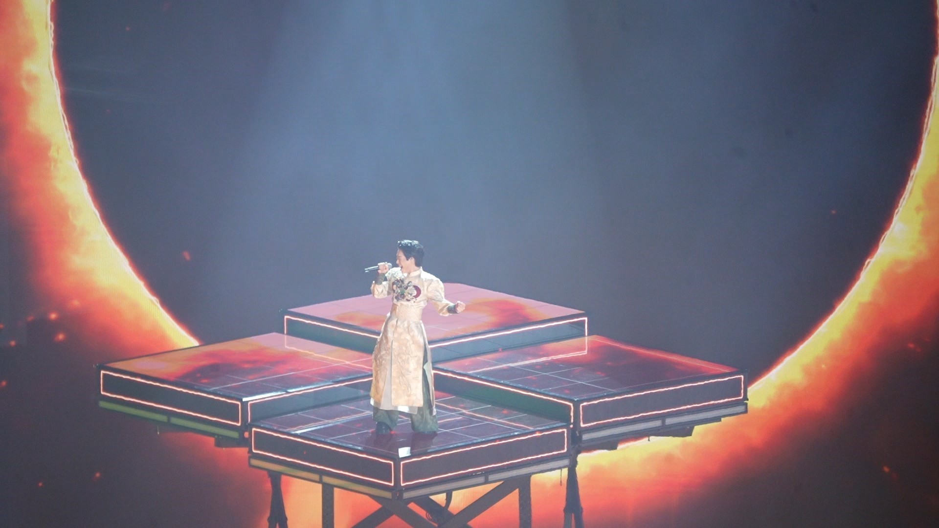 Đức Phúc thể hiện mashup “Phù Đổng Thiên Vương - Đất nước lời ru” tại đêm trao giải VinFuture 2025. Nguồn: VTV