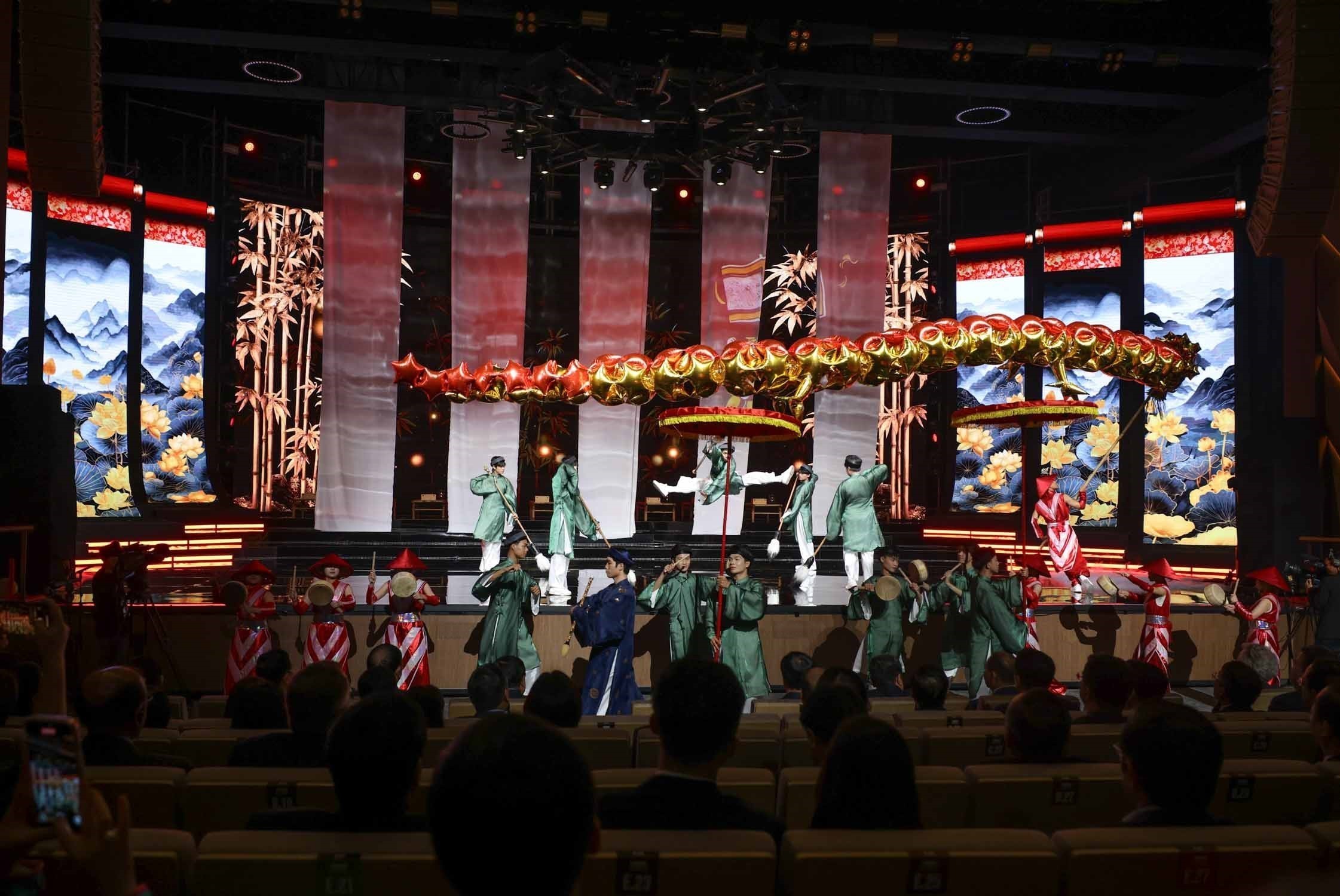 Trình diễn múa tương tác Mapping dải lụa - Hành trình vươn tầm mở màn cho Lễ trao giải VinFuture 2025 tối ngày 5/12 tại Nhà hát Hồ Gươm
