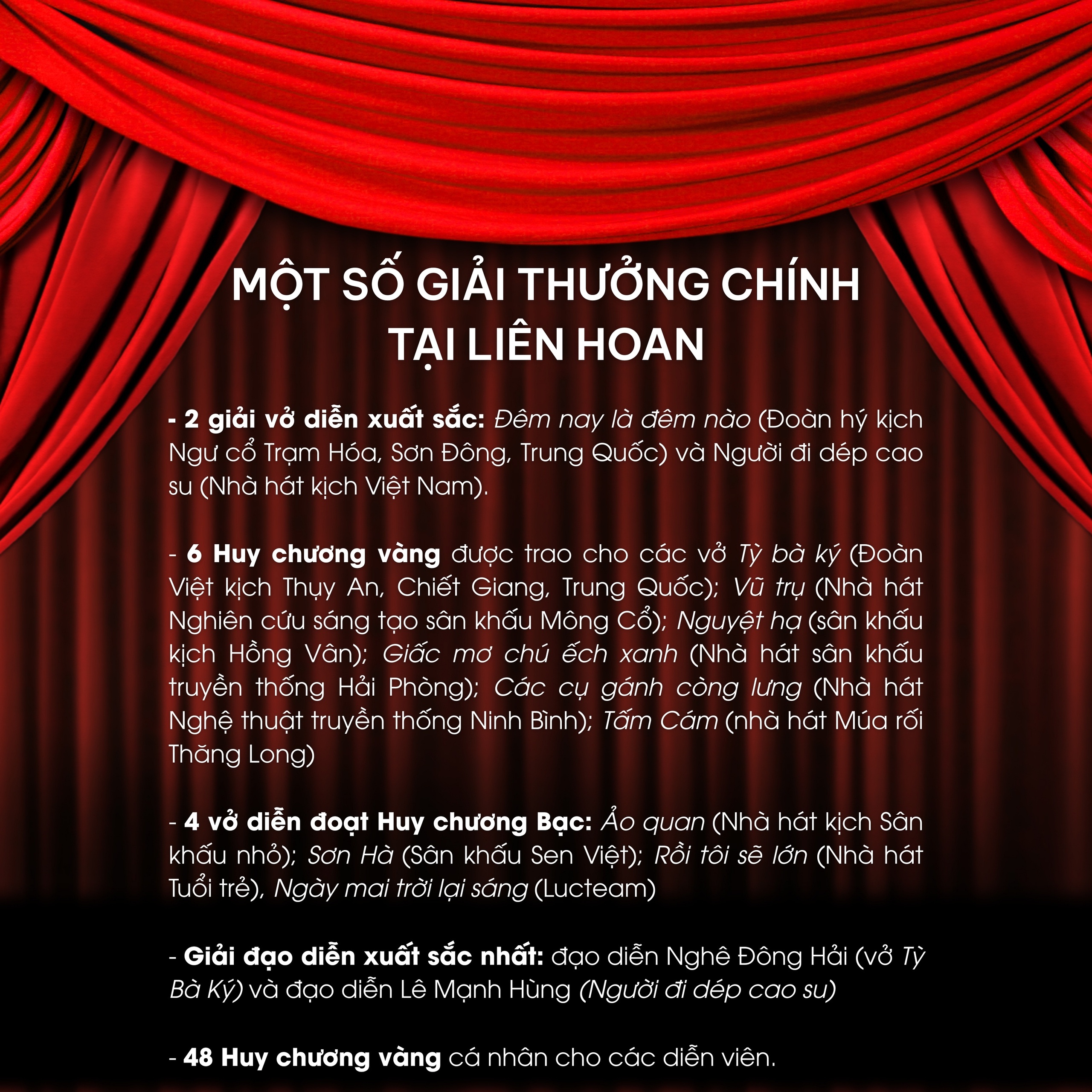 Trong khi đó, ở các vở diễn quốc tế, nhìn tổng thể, Tỳ bà ký của Đoàn Việt kịch Thụy An (Chiết Giang, Trung Quốc) và Vũ trụ của Nhà hát Nghiên cứu sáng tạo sân khấu (Mông Cổ ) được đánh giá khá cao cả về chiều sâu sáng tạo và kỹ thuật biểu diễn.