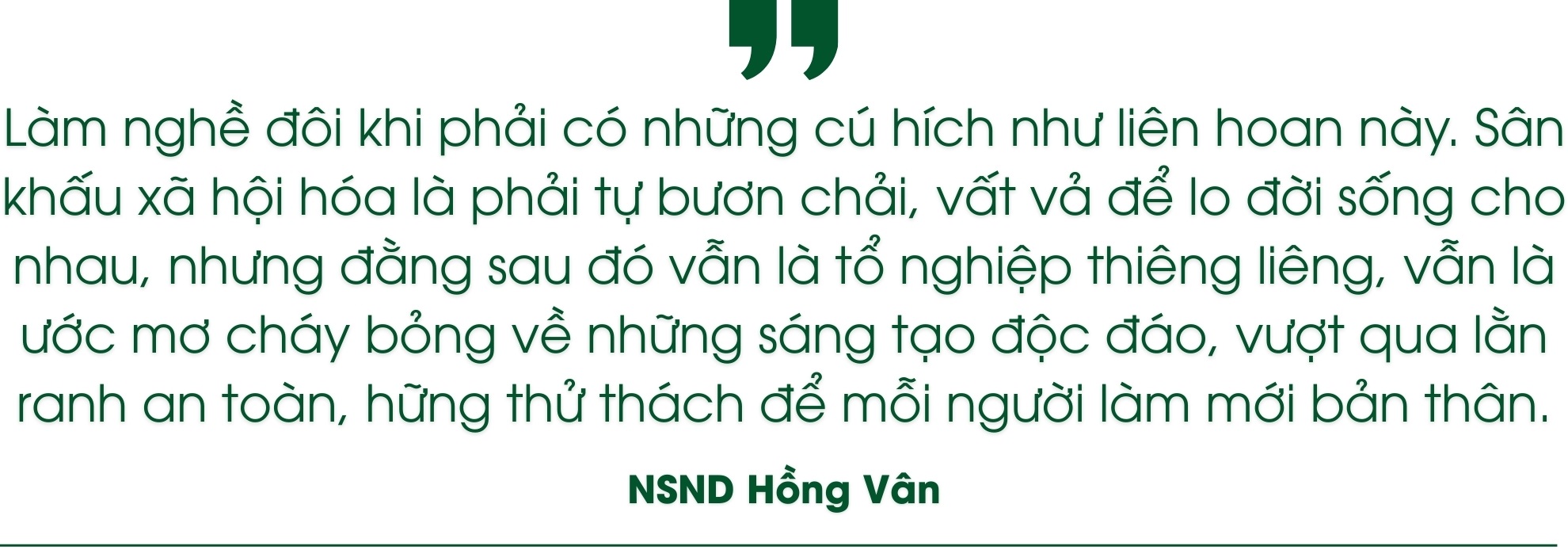 Càng sang giai đoạn về cuối, Liên hoan càng hấp dẫn không chỉ bởi các vở diễn mà còn từ những cuộc hội thảo chuyên môn. Như chia sẻ, điểm sáng của các vở diễn tại mùa liên hoan năm nay nằm ở sự thay đổi quyết liệt trong tư duy sáng tạo: chuyển từ lối kể chuyện "tả thực" sang ngôn ngữ biểu tượng và đa phương tiện. Tại đó, các đạo diễn đã mạnh dạn phá bỏ "bức tường thứ tư", biến sân khấu thành không gian mở của công nghệ và hiệu ứng thị giác.