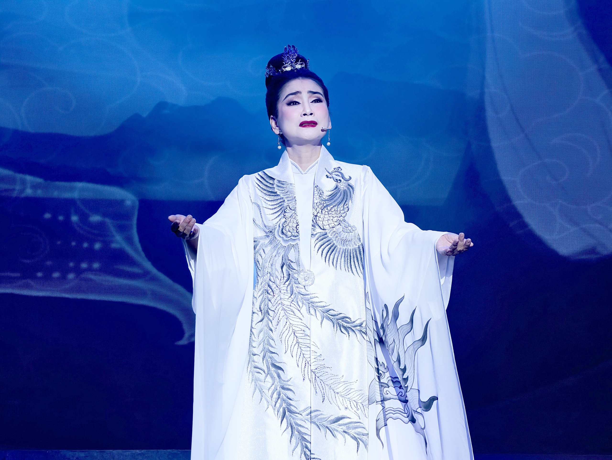 Trên nền diễn xuất ấy, bi kịch của cặp phu thê Thái Bá Giai - Triệu Nương vì thế được gợi lên bằng sự tiết chế và chiều sâu nội tâm, chứ không bằng các cao trào của cảm xúc hoặc hành động. Đặc biệt, không gian vở diễn tinh gọn: ánh sáng trầm, phục trang cổ điển nhưng tiết giảm, âm nhạc dân gian được xử lý đủ mềm để gợi không khí cổ xưa mà vẫn giữ nhịp đương đại. Tất cả tạo nên một ngôn ngữ biểu đạt thanh nhã, tinh tế nhưng đầy chiều sâu.