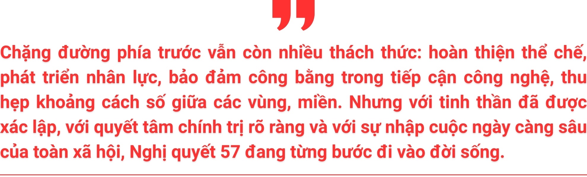 Chặng đường phía trước vẫn còn nhiều thách thức: hoàn thiện thể chế, phát triển nhân lực, bảo đảm công bằng trong tiếp cận công nghệ, thu hẹp khoảng cách số giữa các vùng, miền. Nhưng với tinh thần đã được xác lập, với quyết tâm chính trị rõ ràng và với sự nhập cuộc ngày càng sâu của toàn xã hội, Nghị quyết 57 đang từng bước đi vào đời sống.