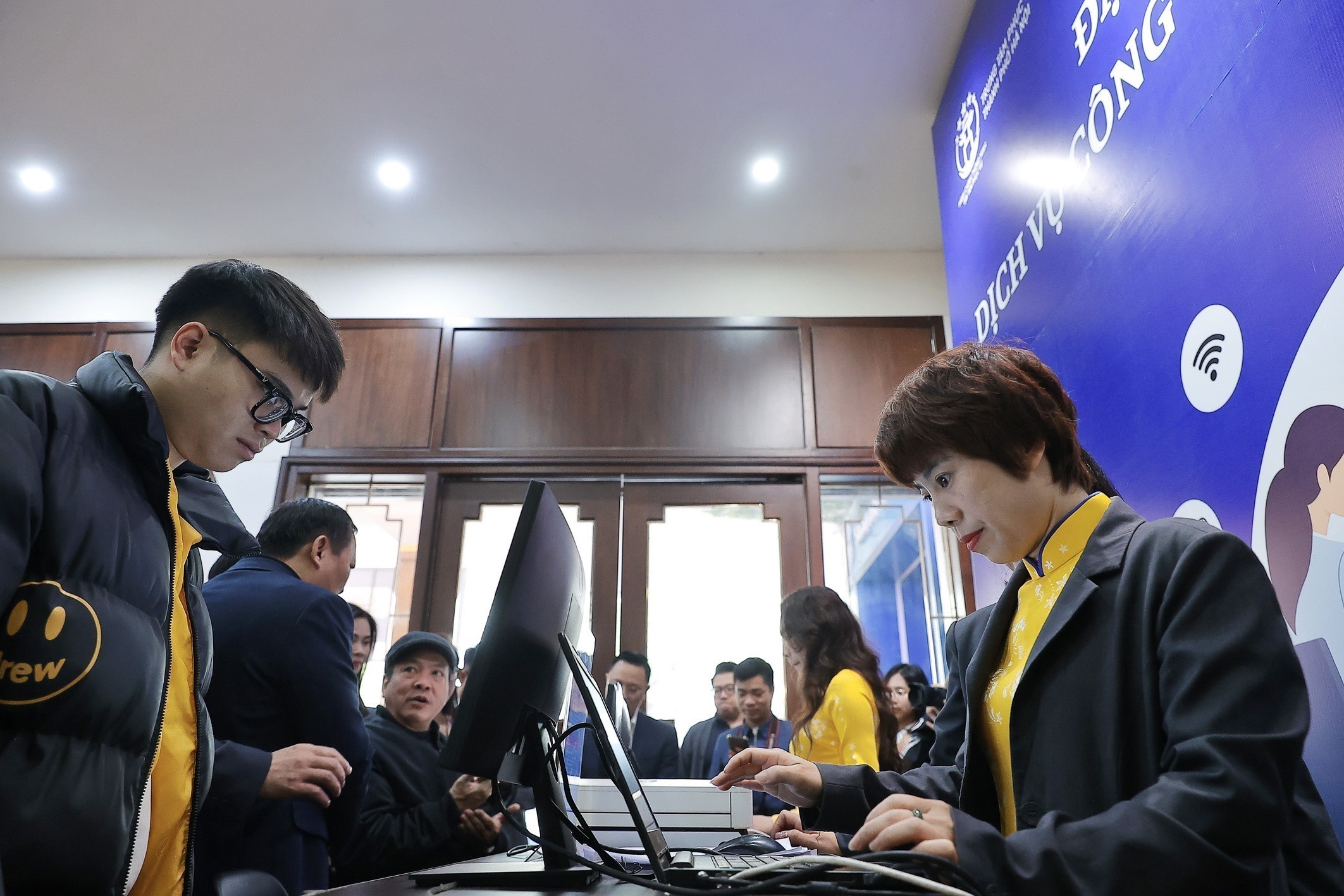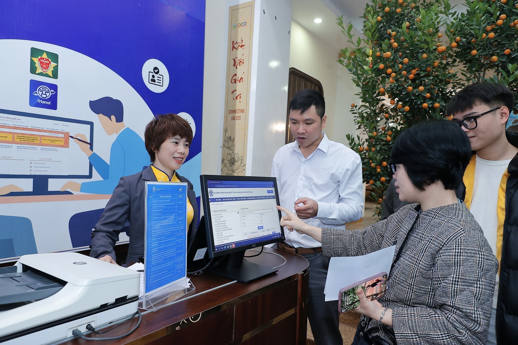 Người dân trải nghiệm đại lý dịch vụ công tại Bưu điện Trung tâm Hoàn Kiếm (Hà Nội)