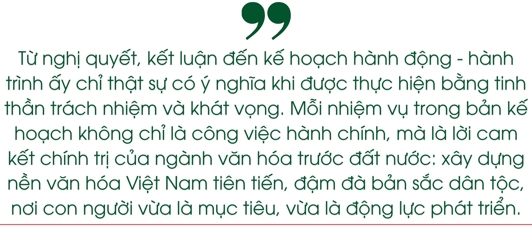 "Văn hóa mở đường – Thể thao dẫn lối" – khẩu hiệu của ngành hôm nay cũng chính là tinh thần của kế hoạch này: đặt văn hóa ở vị trí khởi đầu và dẫn dắt mọi hành trình phát triển. Một quốc gia hạnh phúc không chỉ được đo bằng tăng trưởng kinh tế, mà còn bằng tầm vóc văn hóa và phẩm giá con người. Khi văn hóa được chăm lo đúng nghĩa, đất nước không chỉ mạnh hơn, mà còn đẹp hơn, nhân văn hơn – và đó mới là sức mạnh lâu bền nhất của Việt Nam.