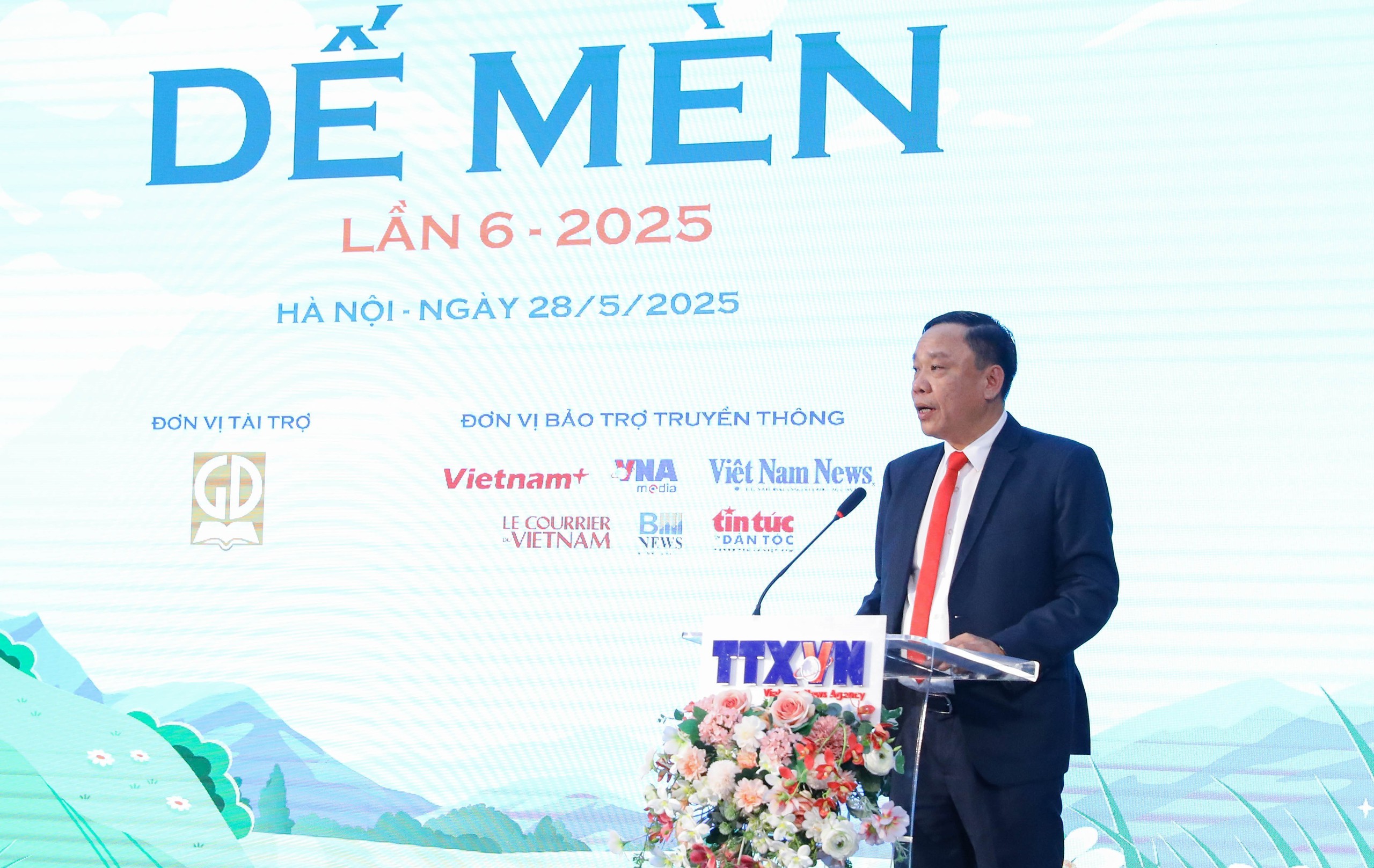 Tổng biên tập Báo Thể thao và Văn hoá Nguyễn Thiện Thuật, Trưởng Ban tổ chức Giải thưởng thiếu nhi Dế Mèn phát biểu khai mạc Lễ trao Giải thưởng năm 2025. Ảnh: Lê Đông - TTXVN