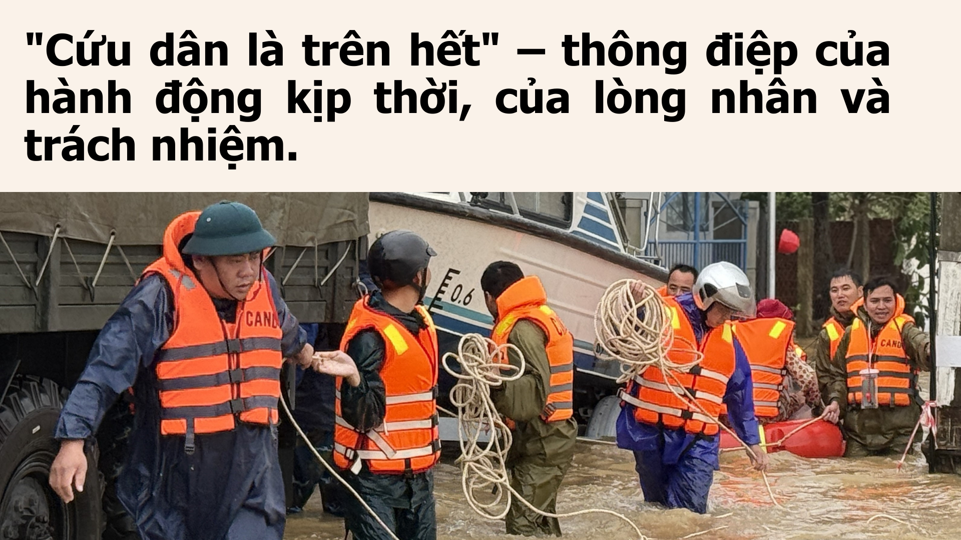 Trong bối cảnh đó, sự vào cuộc quyết liệt của Chính phủ đã tạo nên nhịp hành động mạnh mẽ của cả hệ thống. Năm công điện được ban hành liên tiếp; các Phó Thủ tướng và lãnh đạo Bộ Quốc phòng, Bộ Công an, Bộ Nông nghiệp và Môi trường có mặt tại hiện trường. Lực lượng cứu hộ lên tới 40.000 chiến sĩ chạy đua với thời gian; trực thăng được điều động; máy bay không người lái bay thấp thả nhu yếu phẩm; xuồng, ca nô, xe chuyên dụng hoạt động xuyên đêm.