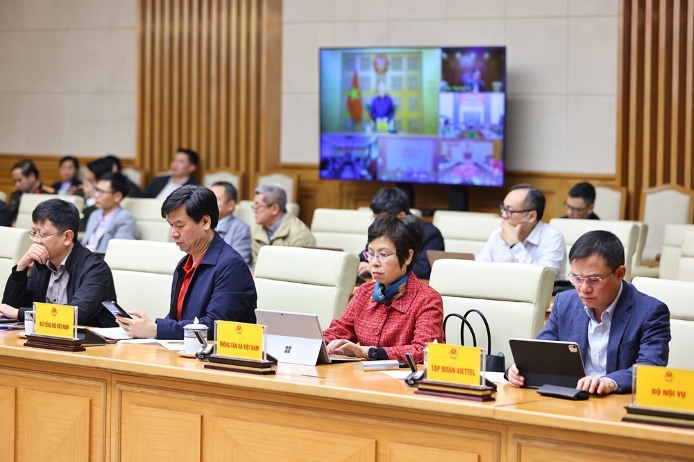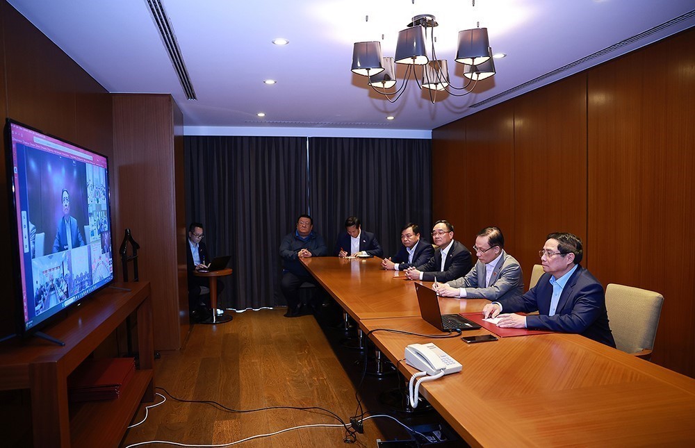 Thủ tướng Phạm Minh Chính họp trực tuyến ngay trong đêm đến các tỉnh, thành phố trong nước để triển khai các phương án cứu hộ, cứu nạn và khắc phục hậu quả thiên tai. Ảnh: Dương Giang-TTXVN