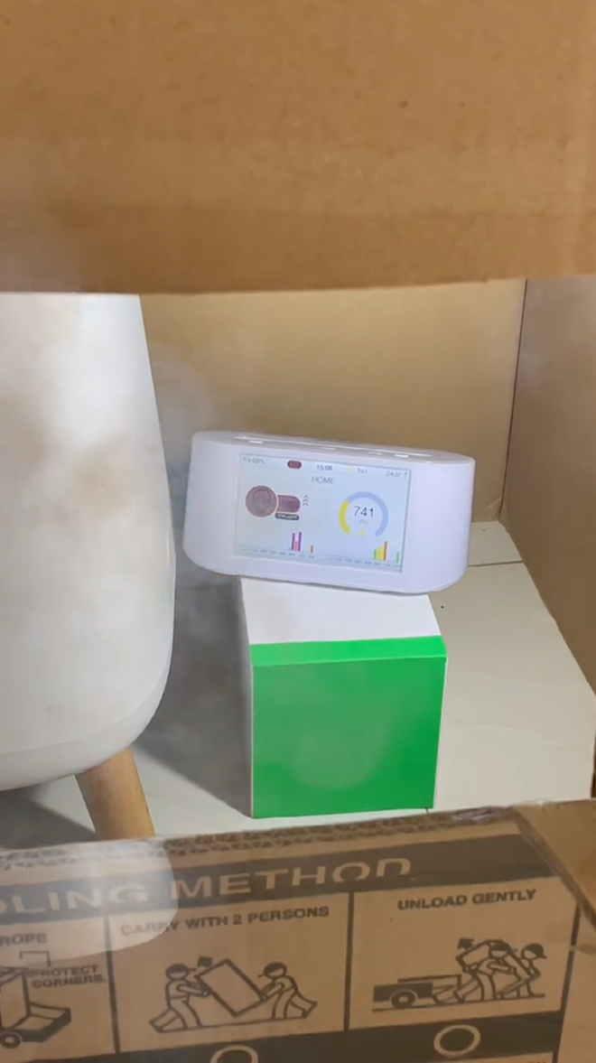 Ban đầu, chất lượng không khí bên trong thùng này đạt mức 1358, mức độ CỰC KỲ NGUY HIỂM. Tuy nhiên, chỉ sau khoảng 1-2 phút, chỉ số này được giảm dần từ từ xuống mức trung bình, khá và cuối cùng là mức an toàn, nồng độ bụi là 0.