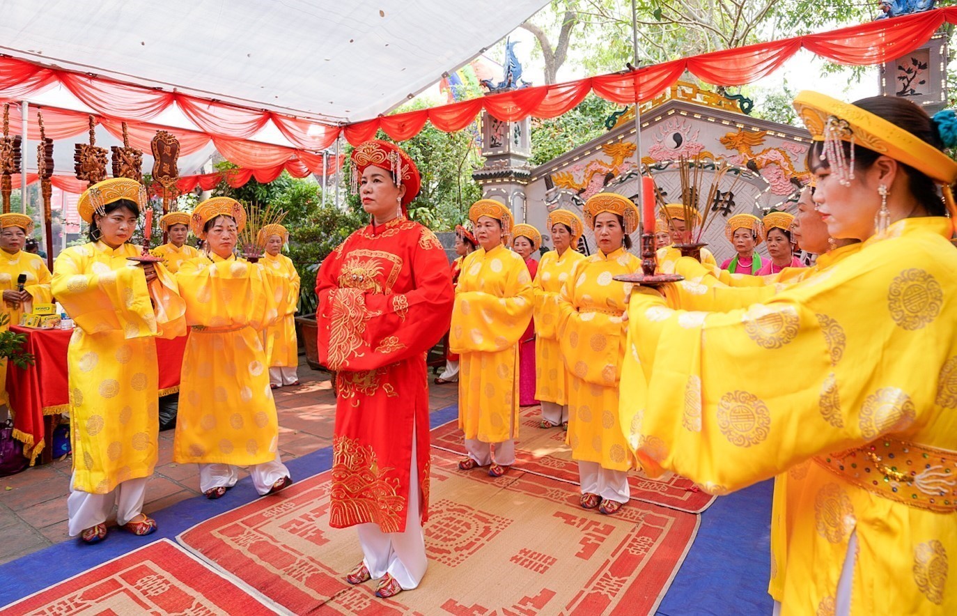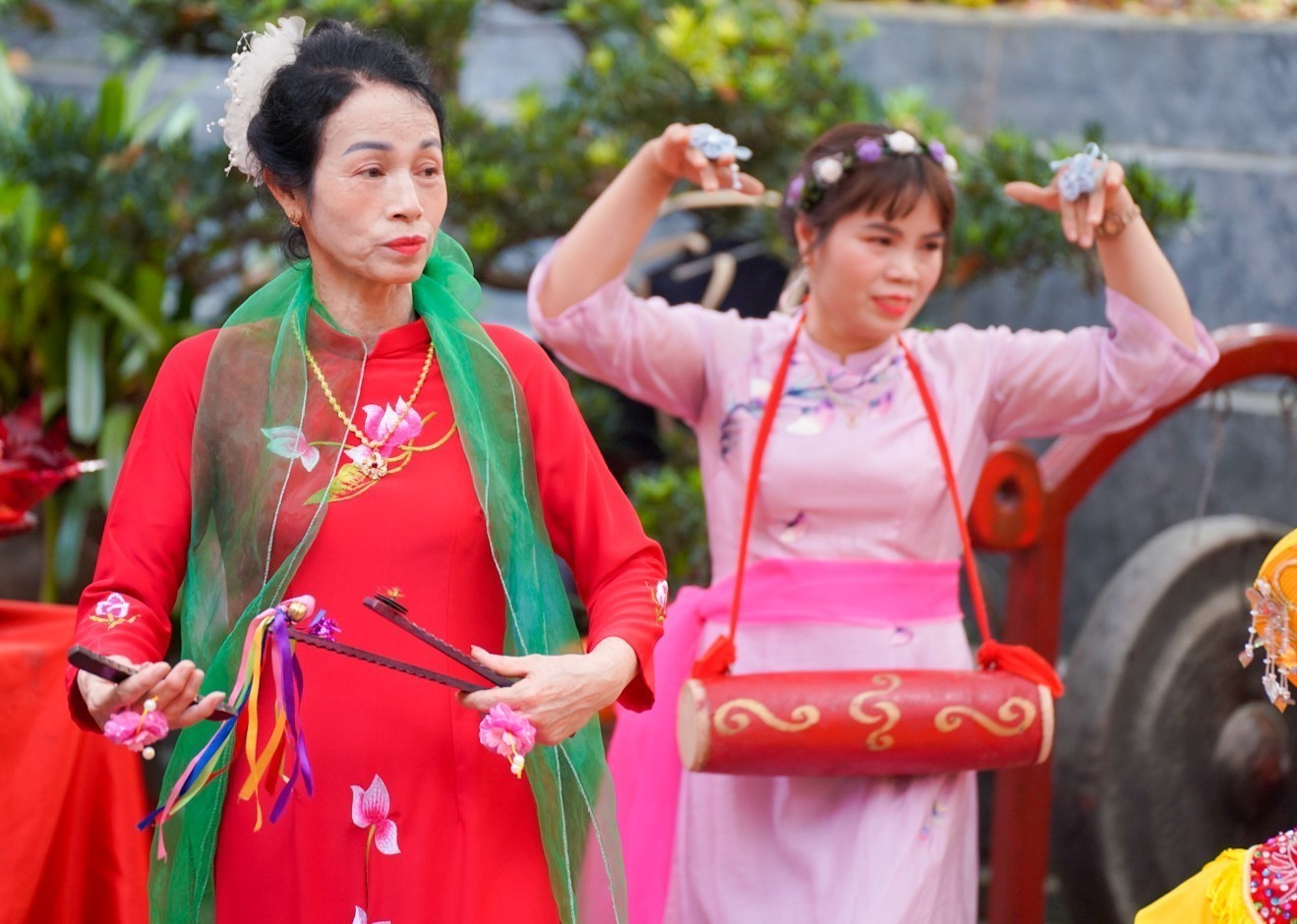 Chương trình biểu diễn nghệ thuật truyền thống với chủ đề "Nhạc ta sử tích" xây dựng theo hình thái của một buổi hát thờ tại đình, miếu cộng đồng người Việt Nam, đưa tới công chúng các tiết mục ca nhạc cổ truyền đặc sắc, góp phần kết nối và lan toả giá trị văn hoá theo đúng định hướng, chiến lược của Nghị quyết 80 NQ/TW về phát triển văn hoá Việt Nam. Ảnh: TTXVN