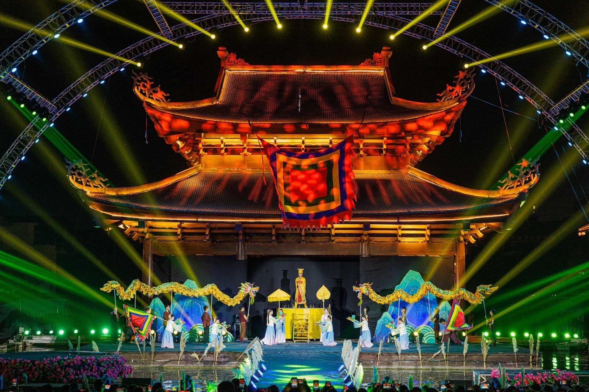 Vở diễn “Anh hùng cờ lau” tái hiện sinh động hành trình từ cậu bé lấy cờ lau tập trận đến thời khắc Đinh Bộ Lĩnh lên ngôi Hoàng đế, mở ra triều đại Đại Cồ Việt – dấu mốc của thời kỳ độc lập đầu tiên trong lịch sử dân tộc