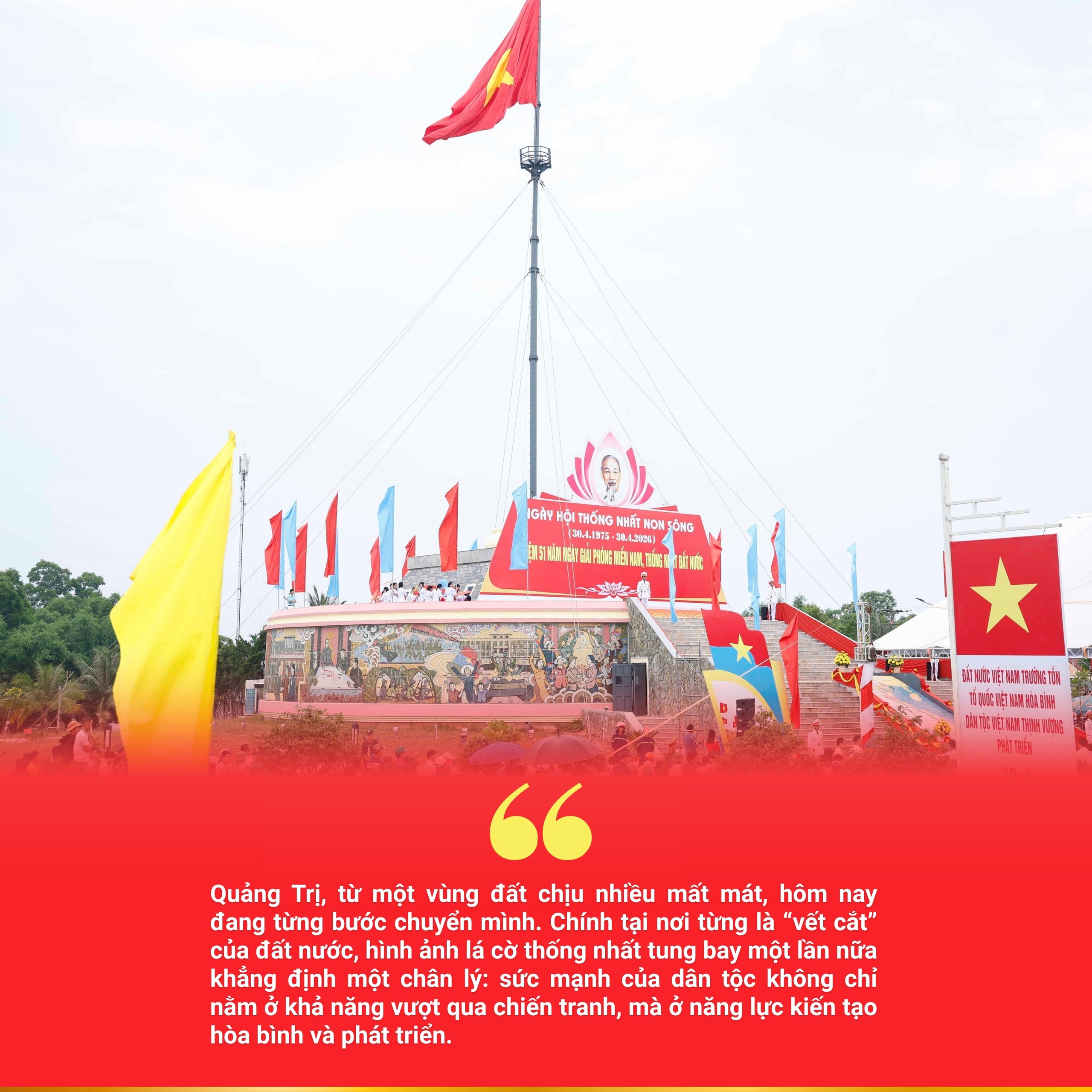 Kỷ niệm 51 năm Ngày Giải phóng hoàn toàn miền Nam, thống nhất đất nước (30/4/1975-30/4/2026), sáng 29/4, dưới Kỳ đài Tổ quốc, tại Khu di tích quốc gia đặc biệt Đôi bờ Hiền Lương - Bến Hải (tỉnh Quảng Trị), Đảng bộ, chính quyền và nhân dân tỉnh Quảng Trị đã long trọng tổ chức Lễ thượng cờ "Thống nhất non sông" năm 2026.