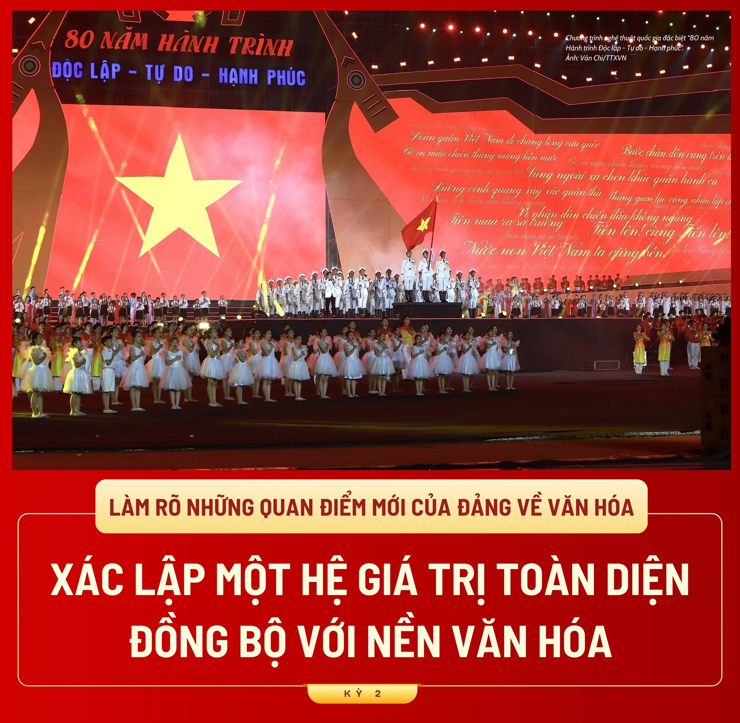 Việc Đảng ta đưa ra quan điểm xây dựng và phát triển nền văn hóa đồng bộ với nền tảng hệ giá trị quốc gia, hệ giá trị văn hóa, hệ giá trị gia đình và chuẩn mực con người Việt Nam là một định hướng mang tính chiến lược.