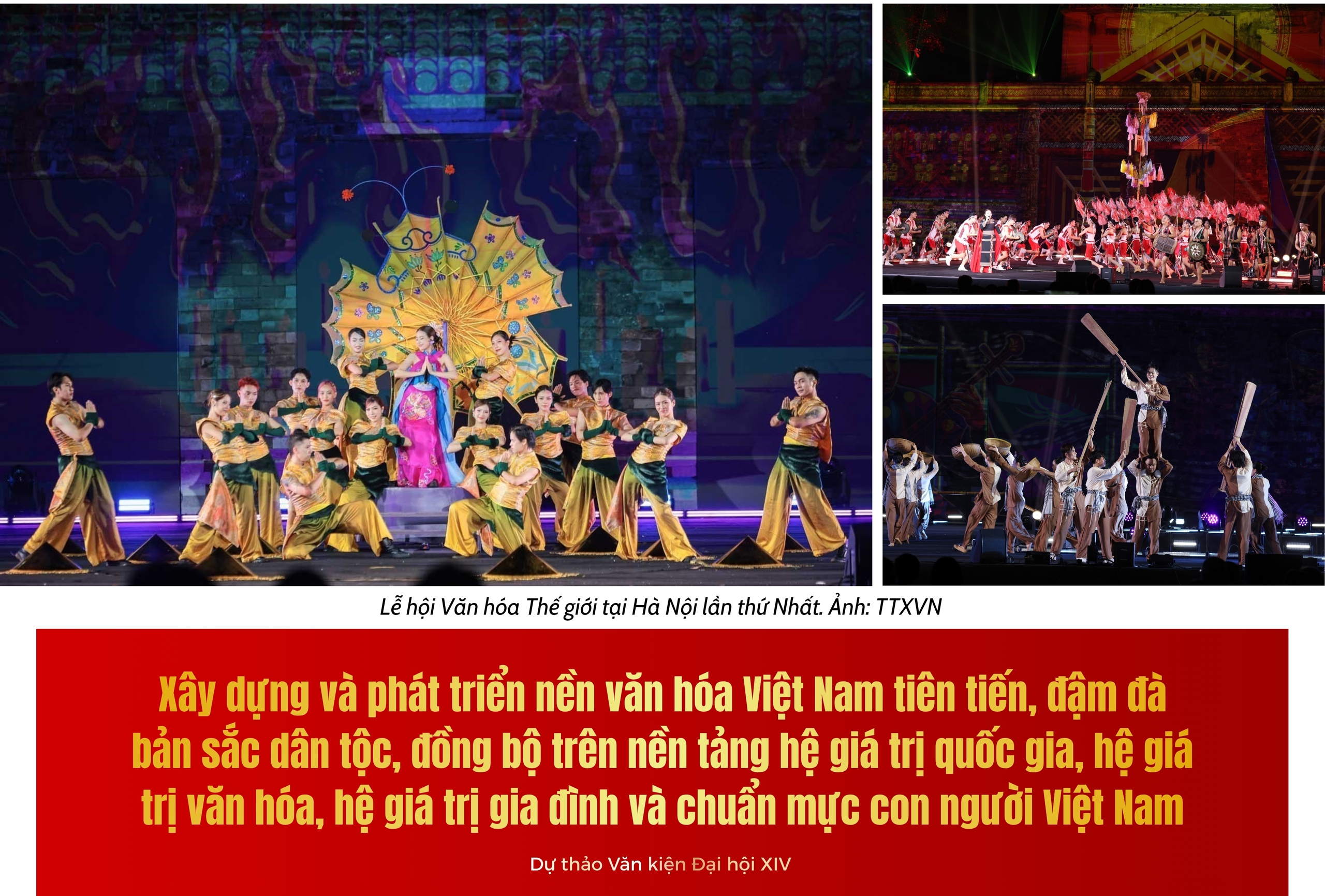 Dự thảo Văn kiện Đại hội Đảng lần thứ XIV đã nêu một điểm mới có ý nghĩa lý luận và thực tiễn sâu sắc: "Xây dựng và phát triển nền văn hóa Việt Nam tiên tiến, đậm đà bản sắc dân tộc, đồng bộ trên nền tảng hệ giá trị quốc gia, hệ giá trị văn hóa, hệ giá trị gia đình và chuẩn mực con người Việt Nam".