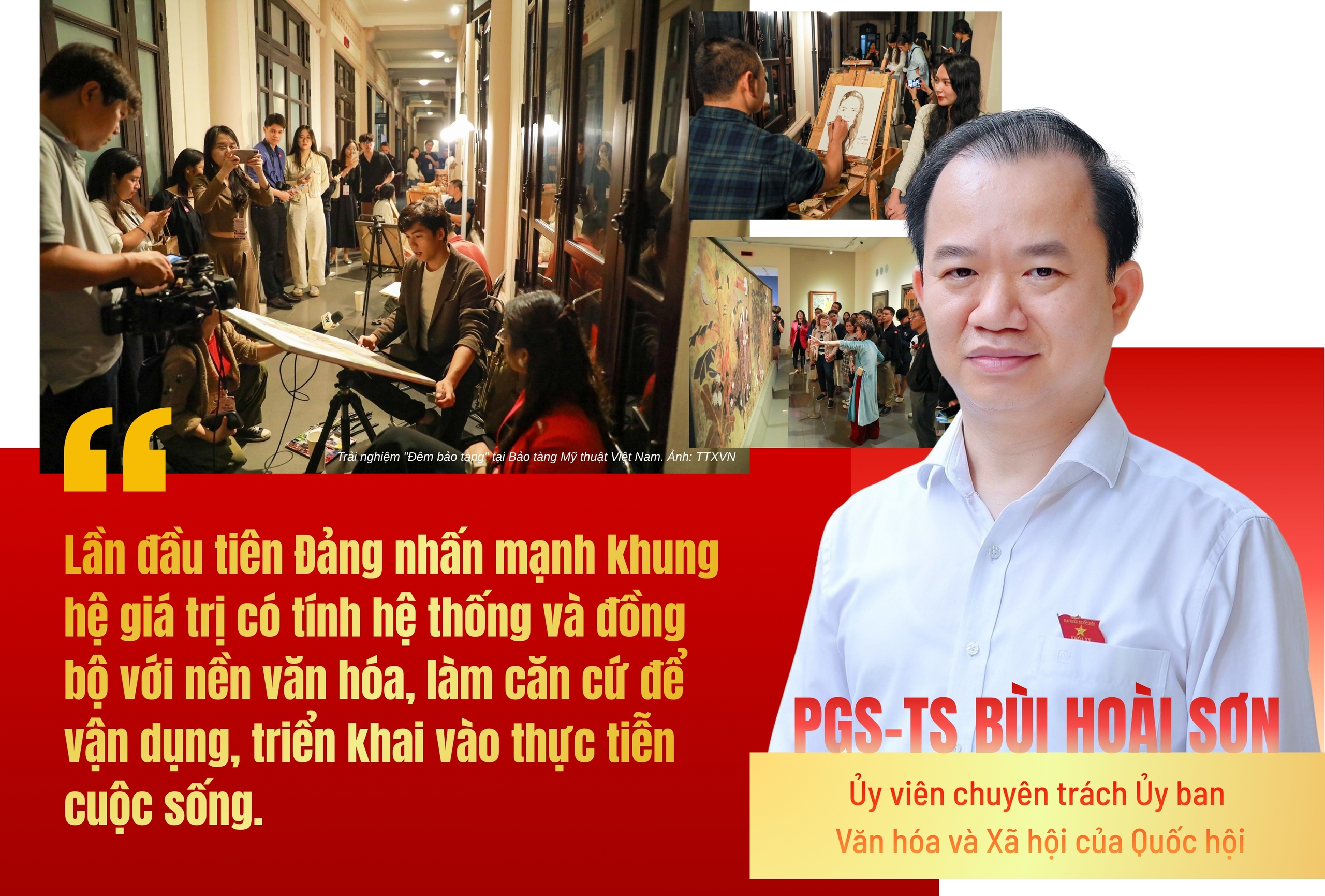 Đồng quan điểm, PGS-TS Bùi Hoài Sơn (Ủy viên chuyên trách Ủy ban Văn hóa và Xã hội của Quốc hội) nhấn mạnh, quan điểm này cho thấy hệ giá trị Việt Nam được cụ thể hóa thành một cấu trúc đồng bộ với nền văn hóa.