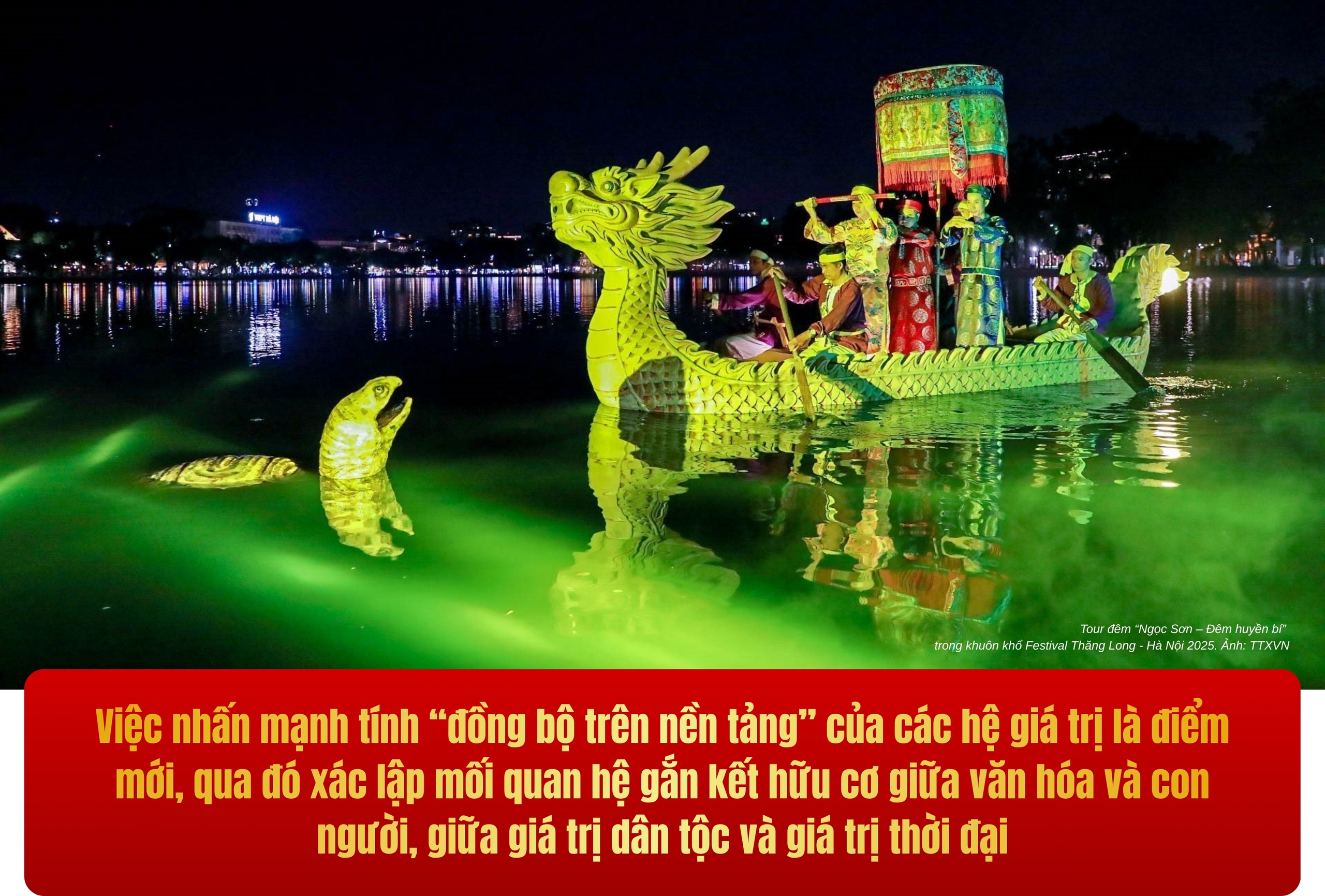 Trong khi đó, TS Nguyễn Tiến Thư (Phó Viện trưởng Viện Văn hoá và Phát triển, Học viện Chính trị quốc gia Hồ Chí Minh) khẳng định, điểm mới ở đây là việc nhấn mạnh tính "đồng bộ trên nền tảng" của các hệ giá trị, qua đó xác lập mối quan hệ gắn kết hữu cơ giữa văn hóa và con người, giữa giá trị dân tộc và giá trị thời đại. Việc xây dựng văn hóa vì thế không chỉ hướng tới phát triển thiết chế hay hoạt động văn hóa, mà còn nhằm hình thành và củng cố hệ giá trị cốt lõi định hình nhân cách con người Việt Nam trong thời kỳ công nghiệp hóa, hiện đại hóa và hội nhập quốc tế.