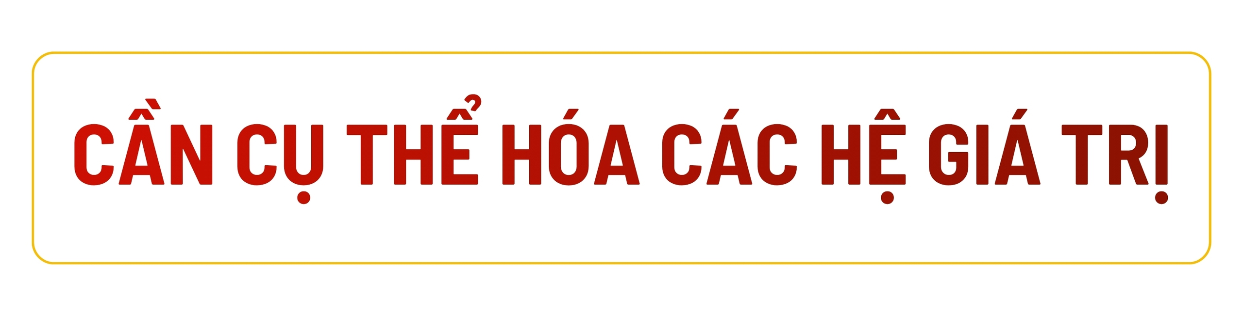 Muốn vậy, phải tích hợp hệ giá trị vào giáo dục phổ thông, nội dung đào tạo ở đại học, vào hoạt động truyền thông, và cả trong các phong trào xã hội. Thay vì khẩu hiệu khô cứng, cần gắn hệ giá trị với những việc làm thiết thực: tôn vinh gương người tốt việc tốt, các phong trào thanh niên khởi nghiệp sáng tạo, gia đình văn hóa kiểu mẫu. Đây chính là cách để giá trị trở thành "máu thịt", ăn sâu vào hành vi và chuẩn mực xã hội.