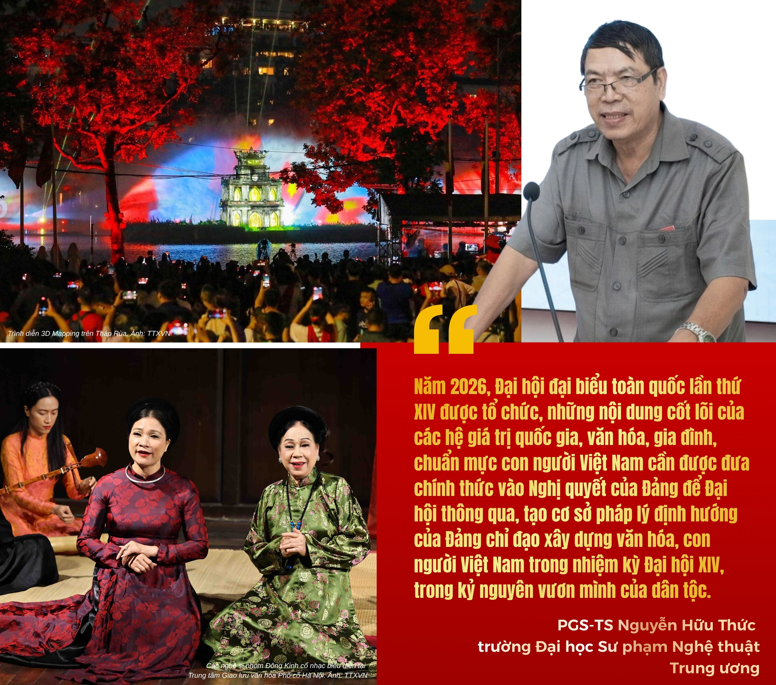 Từ thực tế này, PGS-TS Nguyễn Hữu Thức đề xuất, năm 2026, Đại hội đại biểu toàn quốc lần thứ XIV được tổ chức, những nội dung cốt lõi của các hệ giá trị quốc gia, văn hóa, gia đình, chuẩn mực con người Việt Nam cần được đưa chính thức vào Nghị quyết của Đảng để Đại hội thông qua, tạo cơ sở pháp lý định hướng của Đảng chỉ đạo xây dựng văn hóa, con người Việt Nam trong nhiệm kỳ Đại hội XIV, trong kỷ nguyên vươn mình của dân tộc.