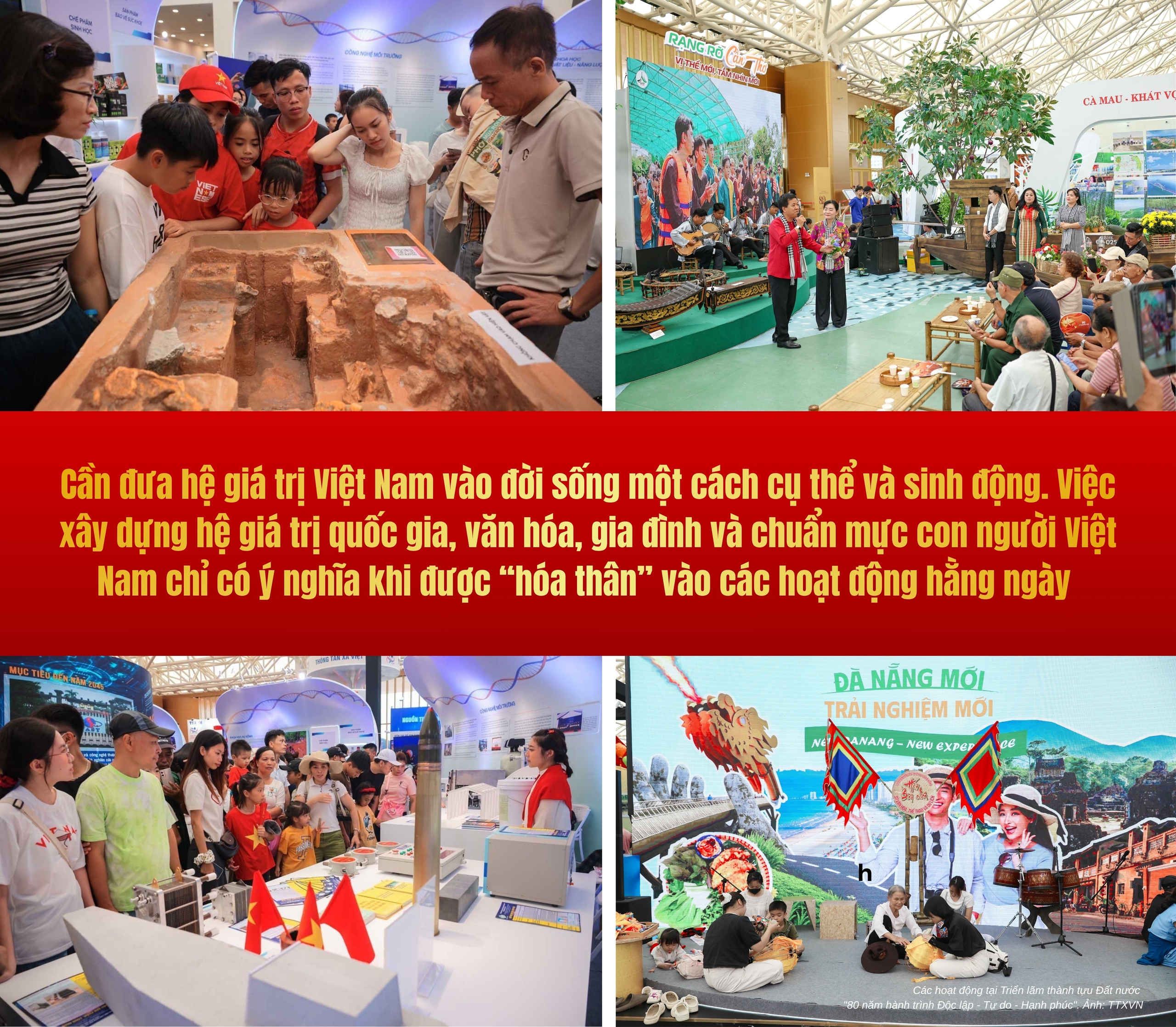 Mặt khác, chuyên gia này cũng cho rằng, cần đưa hệ giá trị Việt Nam vào đời sống một cách cụ thể và sinh động. Việc xây dựng hệ giá trị quốc gia, văn hóa, gia đình và chuẩn mực con người Việt Nam chỉ có ý nghĩa khi được "hóa thân" vào các hoạt động hằng ngày.
