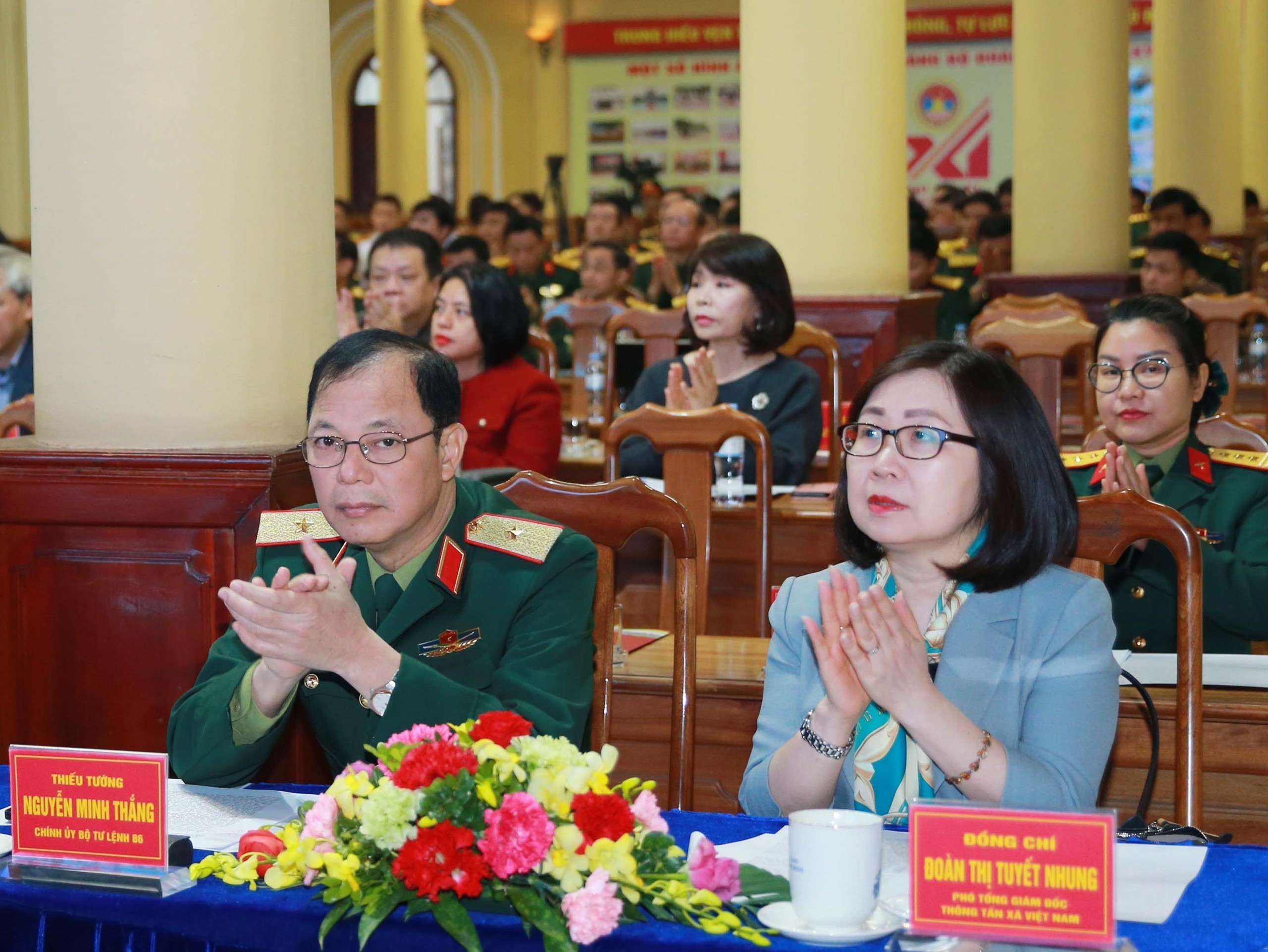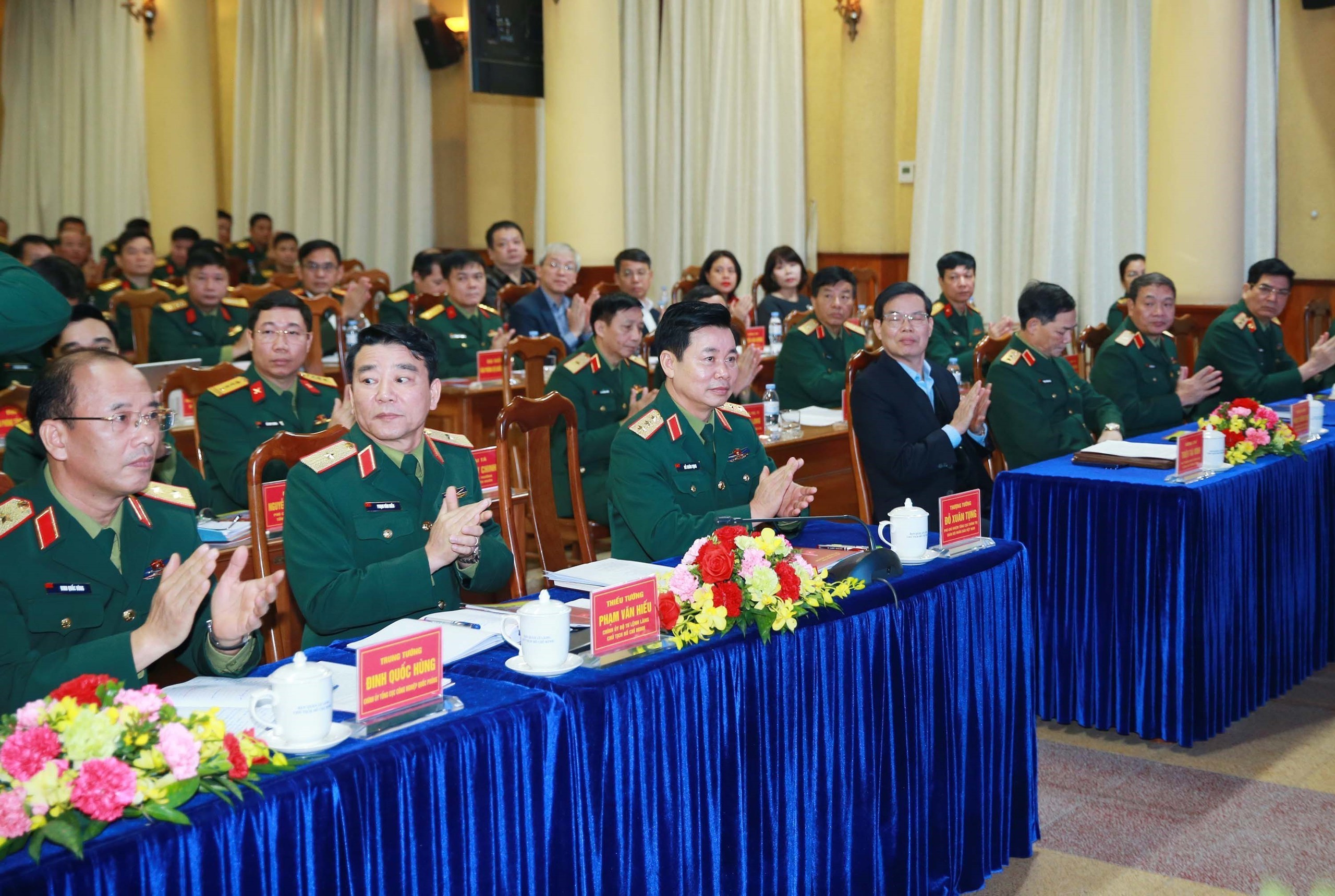 Thượng tướng Đỗ Xuân Tụng, Phó Chủ nhiệm Tổng cục Chính trị QĐND Việt Nam và các đại biểu dự hội nghị. Ảnh: Trọng Đức - TTXVN
