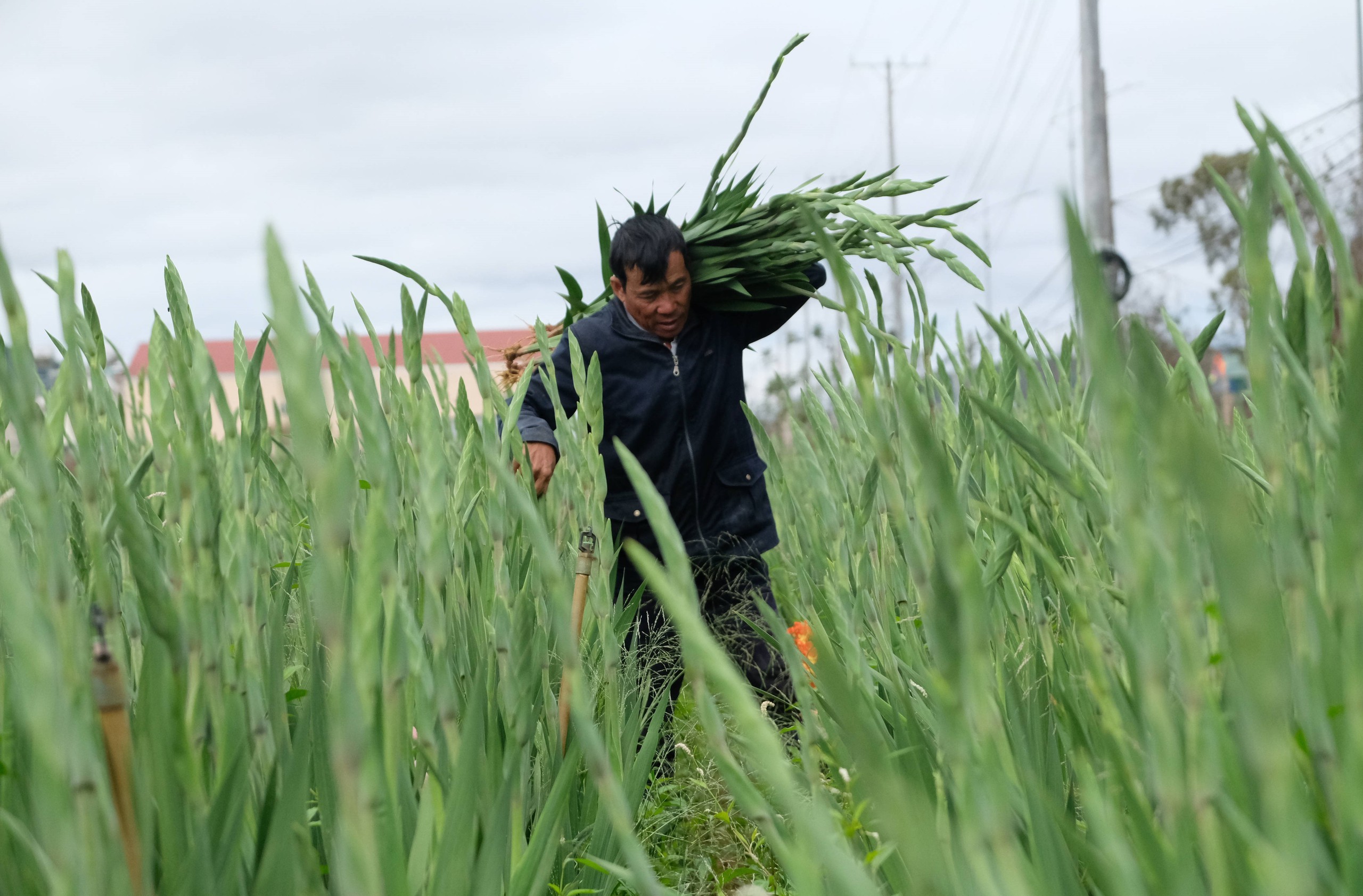 Hiện, các loại hoa lay ơn được thị trường ưa chuộng, giá cao như: đỏ vuông, đỏ pháp, vàng… đang được các nhà vườn tranh thủ thu hoạch, chuyển đi thị trường các tỉnh tiêu thụ. Bà Vũ Thị Nga (thôn Quảng Hiệp, xã Hiệp Thạnh) chia sẻ, hồi cuối năm 2025, vùng sản xuất hoa lay ơn bị ảnh hưởng nặng do các trận mưa lũ liên tiếp.