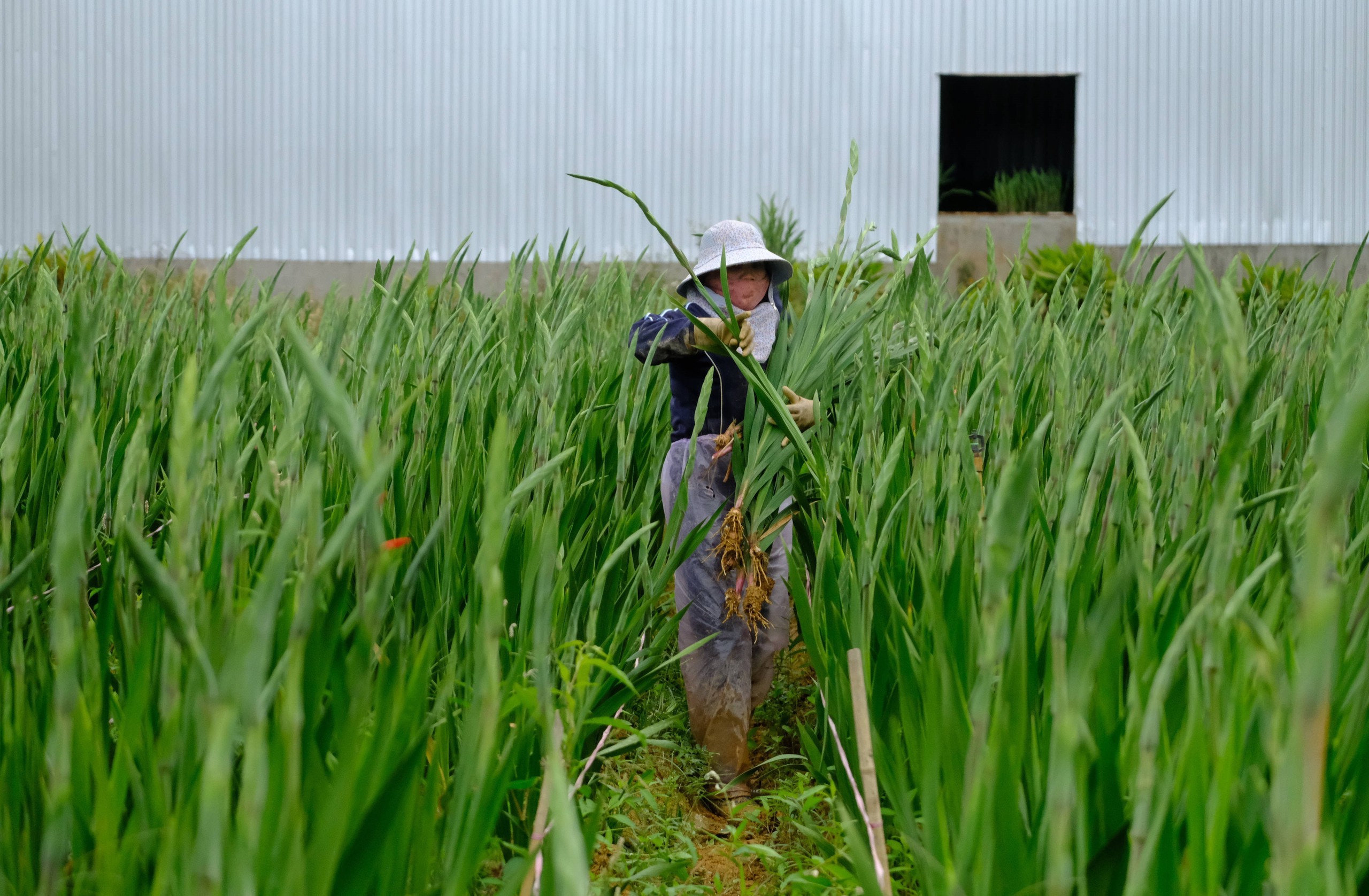 Người dân làng hoa lay ơn Hiệp An (xã Hiệp Thạnh, tỉnh Lâm Đồng) thu hoạch hoa để cung ứng cho thị trường Tết Nguyên đán 2026. Ảnh: Nguyễn Dũng – TTXVN