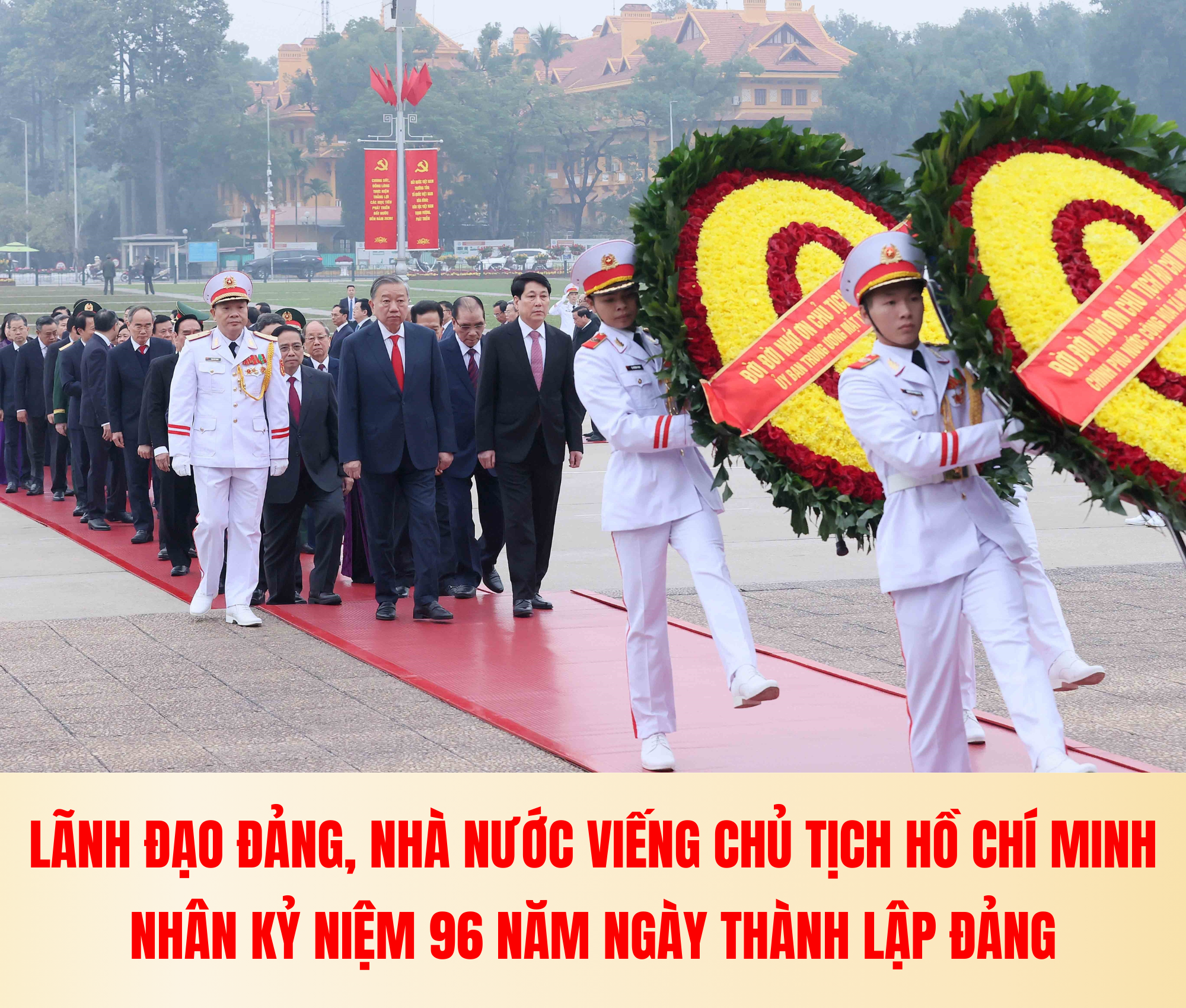 Kỷ niệm 96 năm Ngày thành lập Đảng Cộng sản Việt Nam (3/2/1930 - 3/2/2026), sáng 3/2, Đoàn đại biểu Ban Chấp hành Trung ương Đảng, Quốc hội, Chủ tịch nước, Chính phủ, Ủy ban Trung ương Mặt trận Tổ quốc Việt Nam đã đặt vòng hoa, vào Lăng viếng Chủ tịch Hồ Chí Minh.