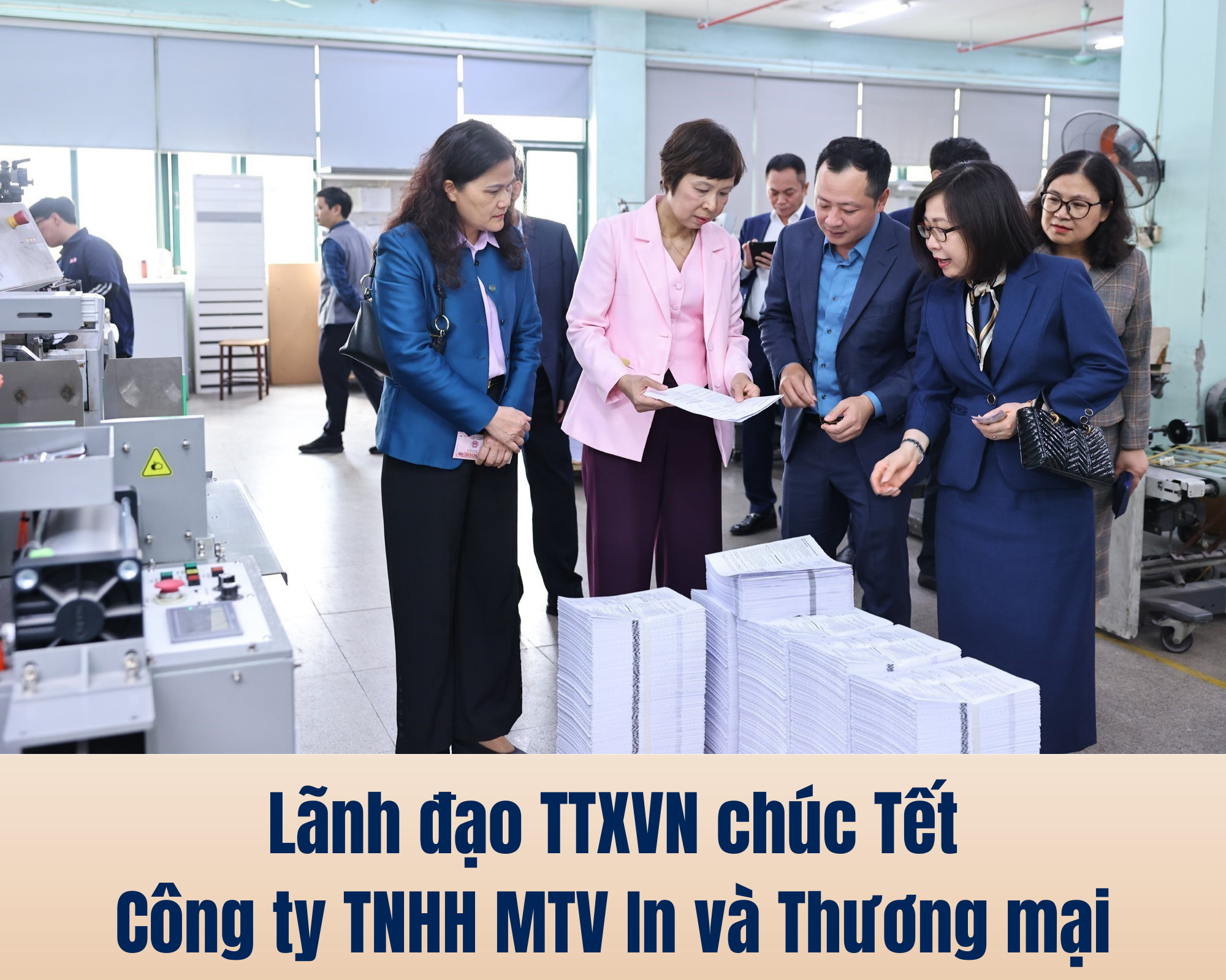 Nhân dịp năm mới Bính Ngọ 2026, chiều 23/2/2026, Tổng Giám đốc Vũ Việt Trang cùng các đồng chí lãnh đạo Thông tấn xã Việt Nam đến thăm, chúc Tết và động viên cán bộ, công nhân Công ty TNHH MTV In và Thương mại TTXVN.