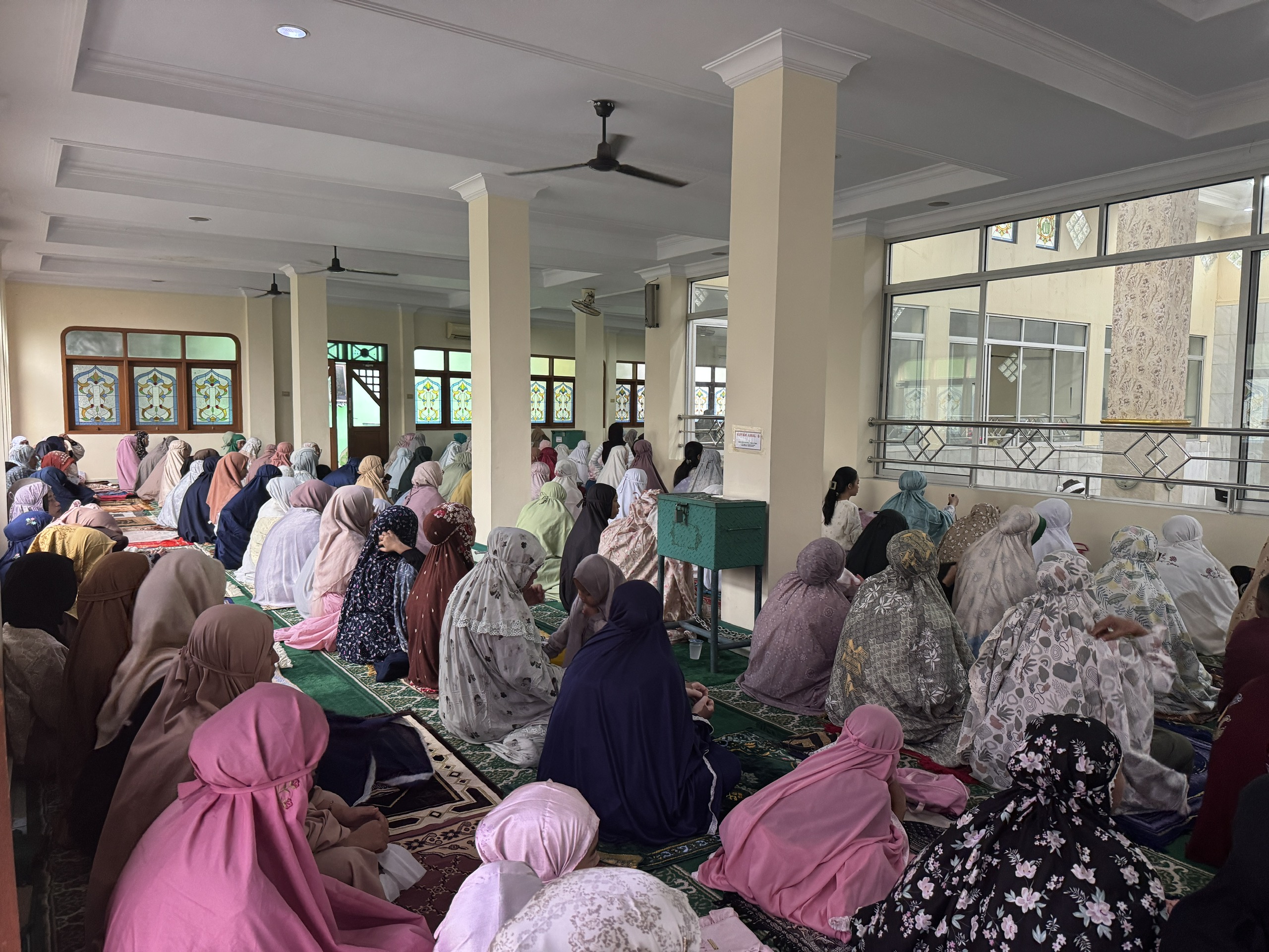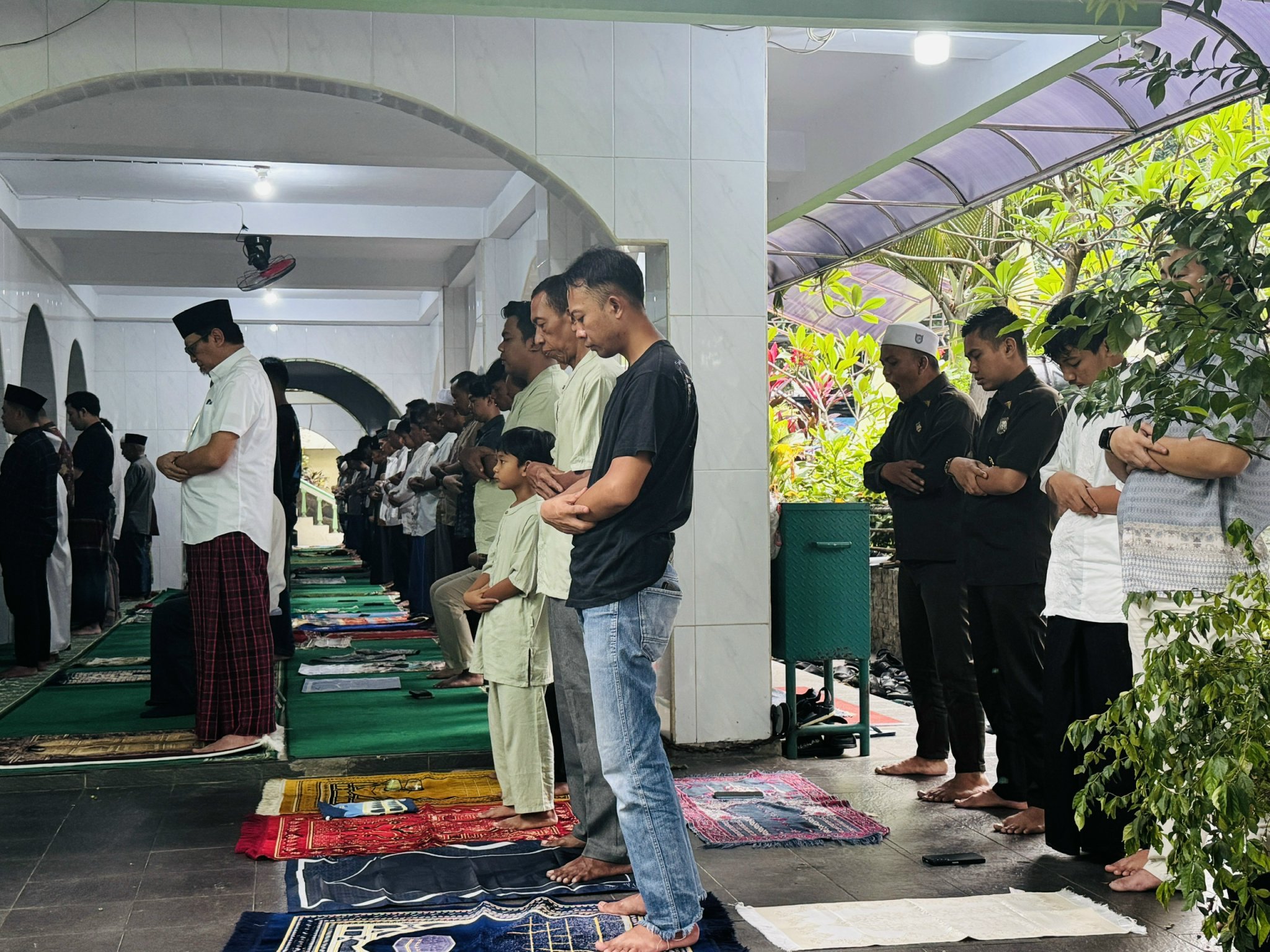 Với ý nghĩa linh thiêng, lễ cầu nguyện đầu tiên của Idul Fitri được tổ chức vào sáng sớm, ngay sau khi mặt trời mọc. Không chỉ các thánh đường, mà cả quảng trường, sân vận động hay khu dân cư cũng trở thành không gian hành lễ khi số người tham dự lên tới hàng nghìn, thậm chí hàng chục nghìn tín đồ. Khuôn viên sân, vườn của nhiều nhà thờ cũng đông kín người đến hành lễ. Những tấm thảm lễ sát nhau, người người đứng xếp hàng ngay ngắn, trật tự, thể hiện tinh thần bình đẳng và gắn kết cộng đồng, không phân biệt giàu nghèo hay địa vị xã hội.