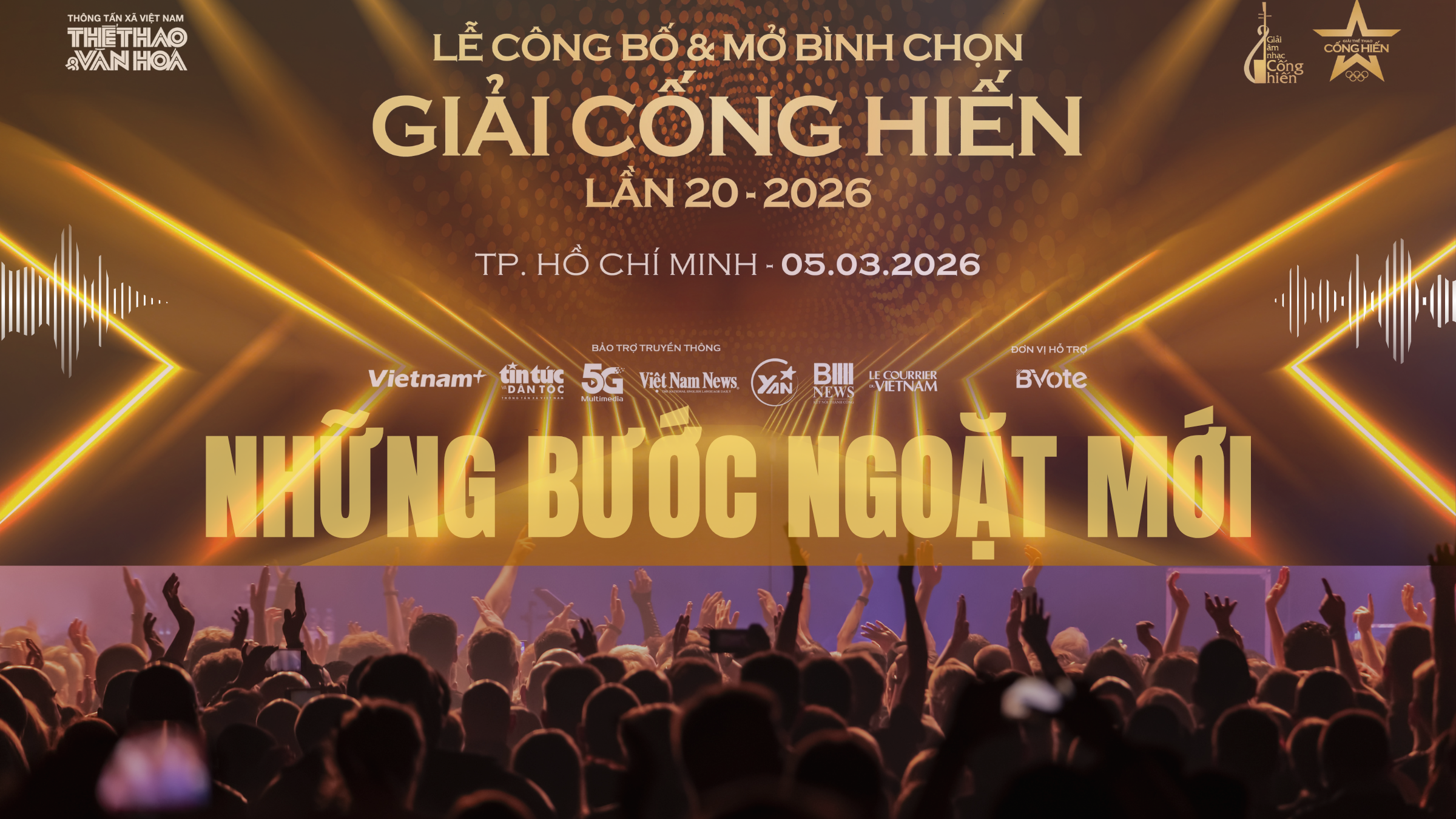 Lễ công bố Giải thưởng Cống hiến lần 20 năm 2026 của báo Thể thao và Văn hóa (TTXVN) diễn ra tại TP HCM chiều ngày 5/3, với sự tham dự của nhiều nhà báo, nhạc sĩ, ca sĩ, nhà quản lý, nhà sản xuất và người hâm mộ. Lễ lần đầu tiên công bố SOOBIN và Hòa Minzy là Đại sứ của Giải thưởng Cống hiến lần 20 năm 2026.