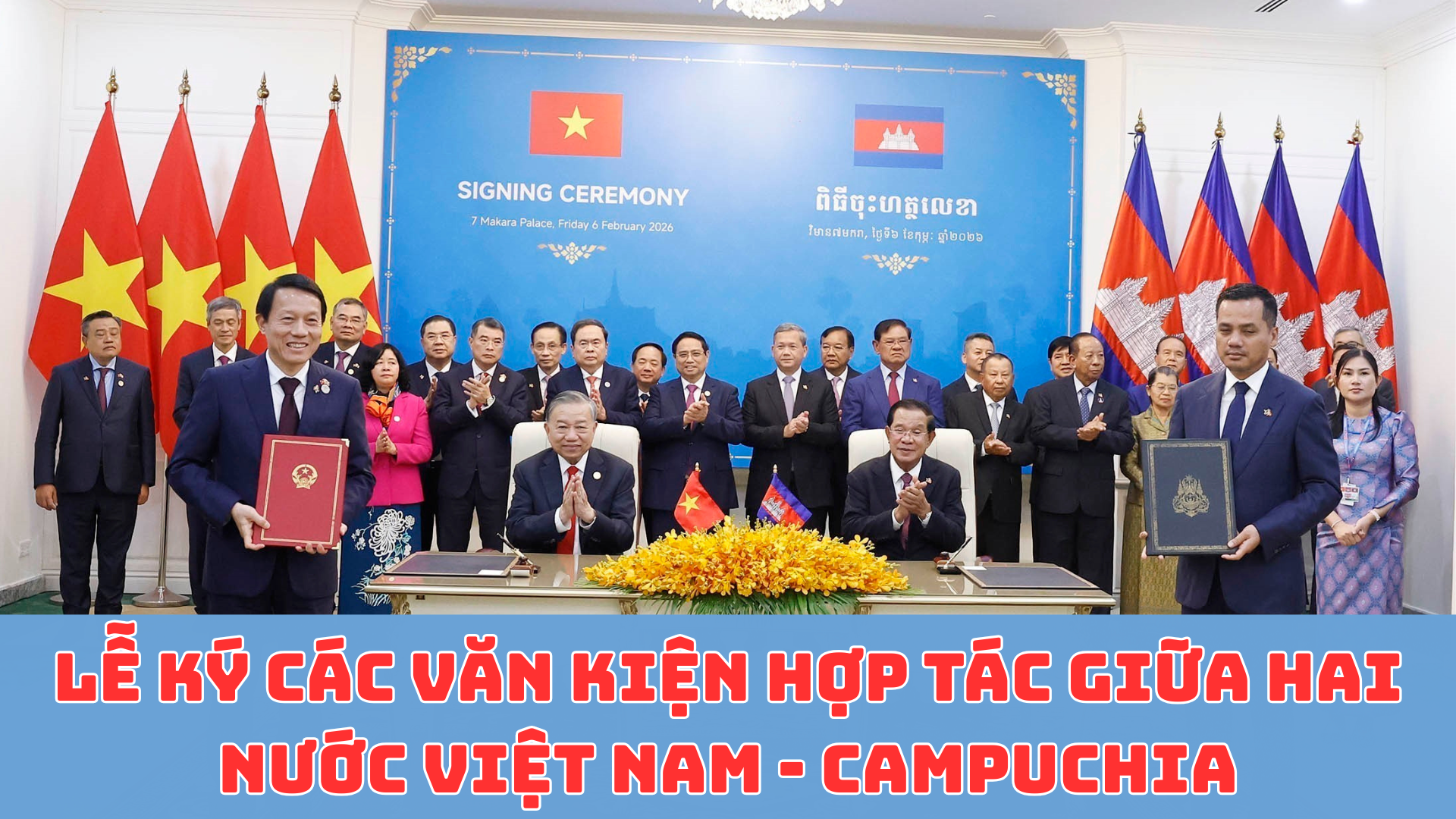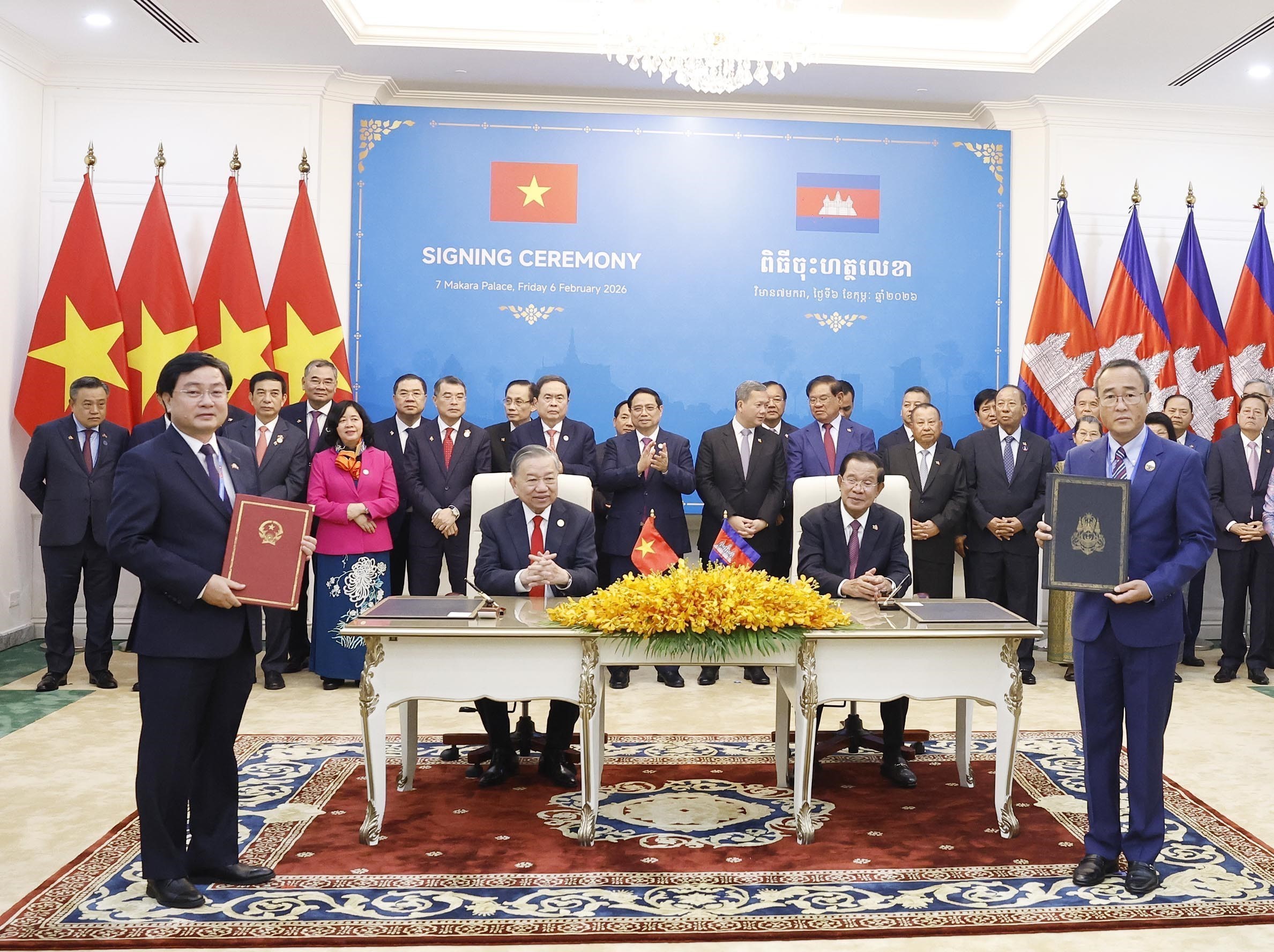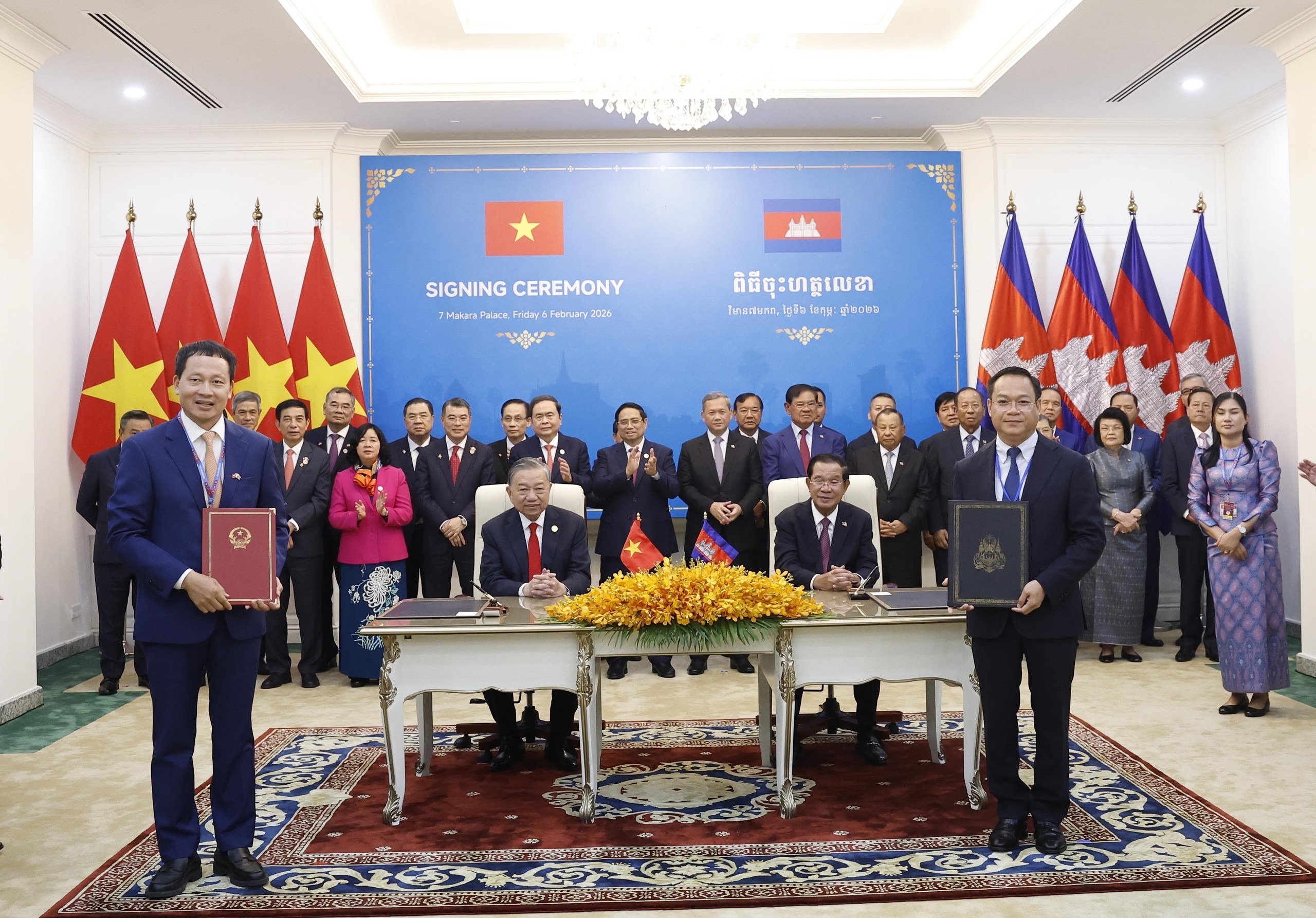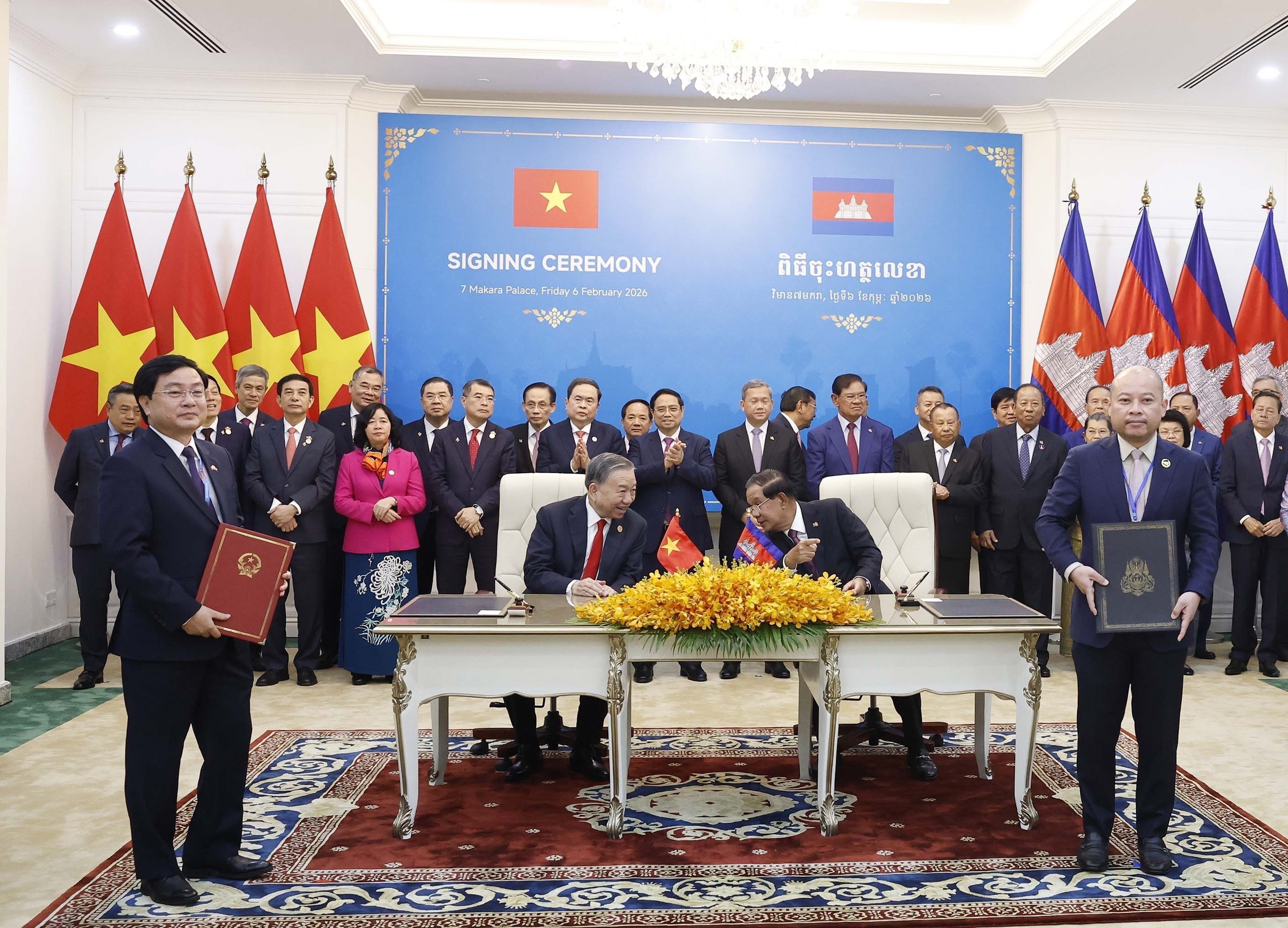 Sáng 6/2/2026, tại Thủ đô Phnom Penh, Tổng Bí thư Tô Lâm và Chủ tịch Đảng Nhân dân Campuchia Samdech Techo Hun Sen chứng kiến lễ ký các văn kiện hợp tác giữa hai nước.