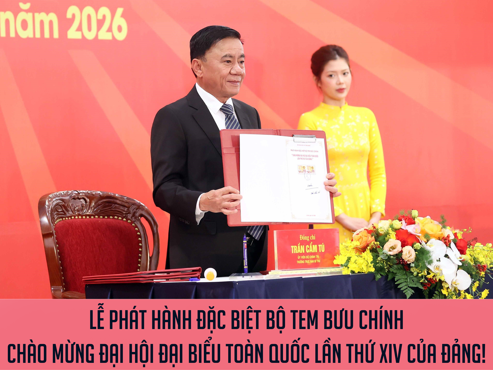 Chiều 14/1/2026, tại Trung tâm Hội nghị quốc gia, Ban Tuyên giáo và Dân vận Trung ương phối hợp với Bộ Khoa học và Công nghệ tổ chức Lễ phát hành đặc biệt bộ tem bưu chính "Chào mừng Đại hội đại biểu toàn quốc lần thứ XIV của Đảng".