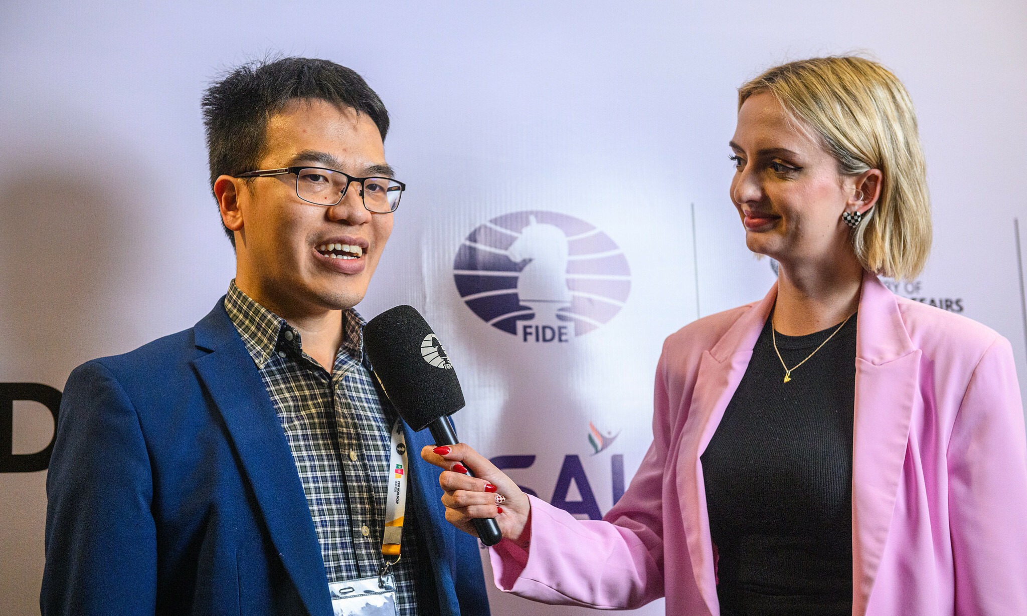 Lê Quang Liêm trong phỏng vấn sau lượt về vòng bốn World Cup cờ vua tại Goa, Ấn Độ ngày 12/11/2025. Ảnh: FIDE
