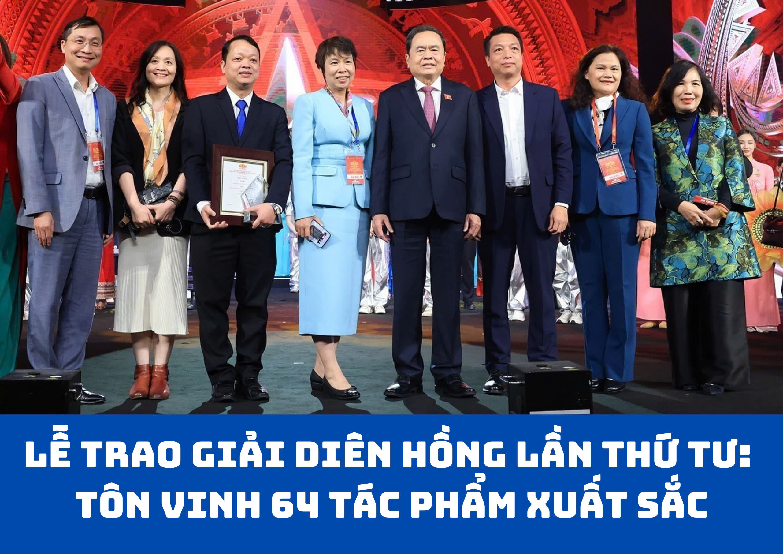 Tại Lễ trao Giải Báo chí toàn quốc về Quốc hội và Hội đồng nhân dân (Giải Diên Hồng) lần thứ tư diễn ra tối 18/12, Ban Tổ chức đã vinh danh 64 tác phẩm xuất sắc nhất trong tổng số hơn 3.500 tác phẩm tham dự giải, trong đó có 5 giải A, 12 giải B, 22 giải C và 25 giải Khuyến khích.