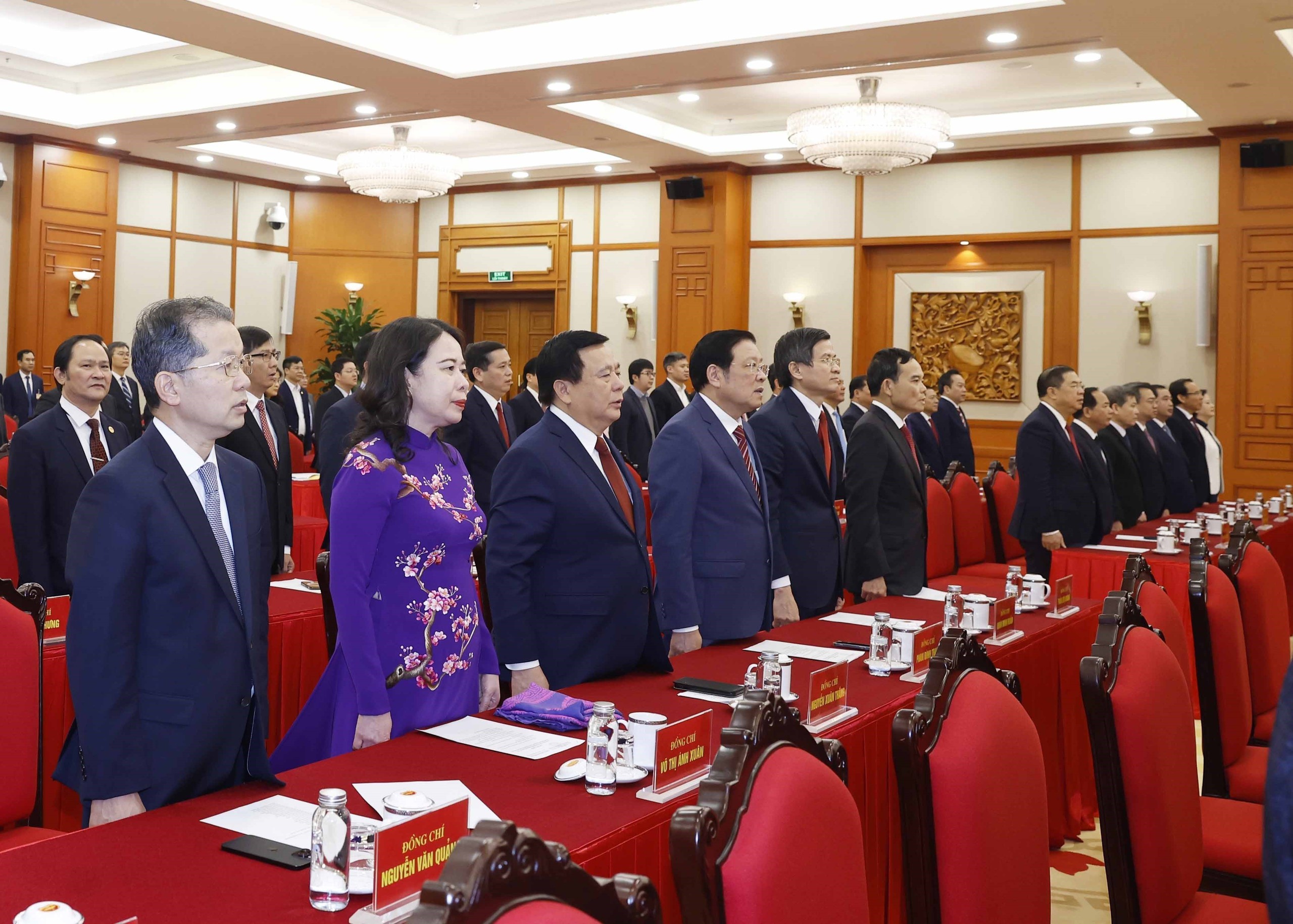 Tổng Bí thư Tô Lâm và các đại biểu thực hiện nghi lễ chào cờ. Ảnh: Thống Nhất – TTXVN