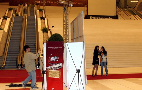 Ảnh chụp lúc 11h ngày 17/10 ngay trước thảm đỏ tại Trung tâm Hội nghị quốc gia
