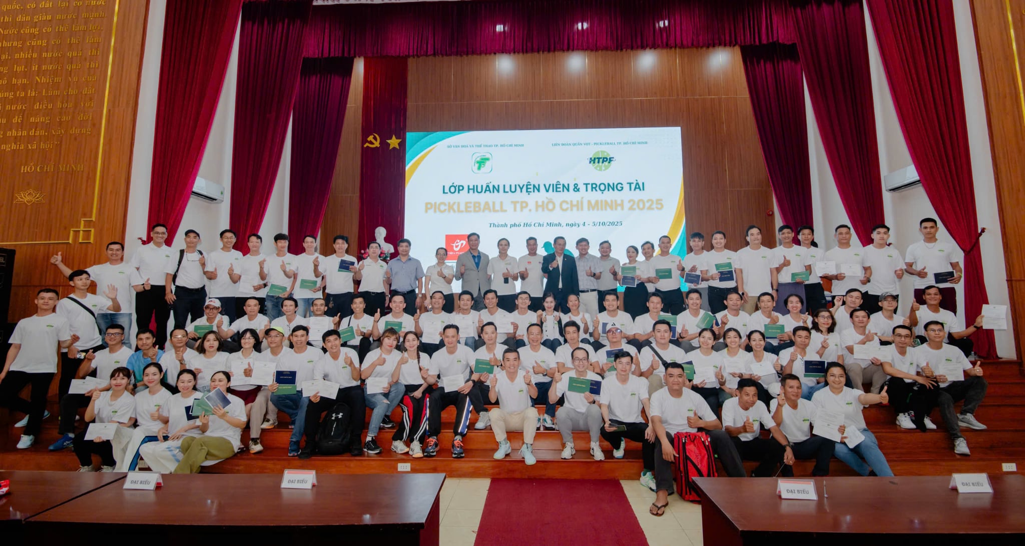 Trong các ngày từ 01 đến 05/10/2025, tại TP. Hồ Chí Minh đã diễn ra Lớp Huấn luyện viên & Trọng tài Pickleball TP.HCM năm 2025, thu hút hơn 350 học viên đến từ nhiều tỉnh, thành trên cả nước.