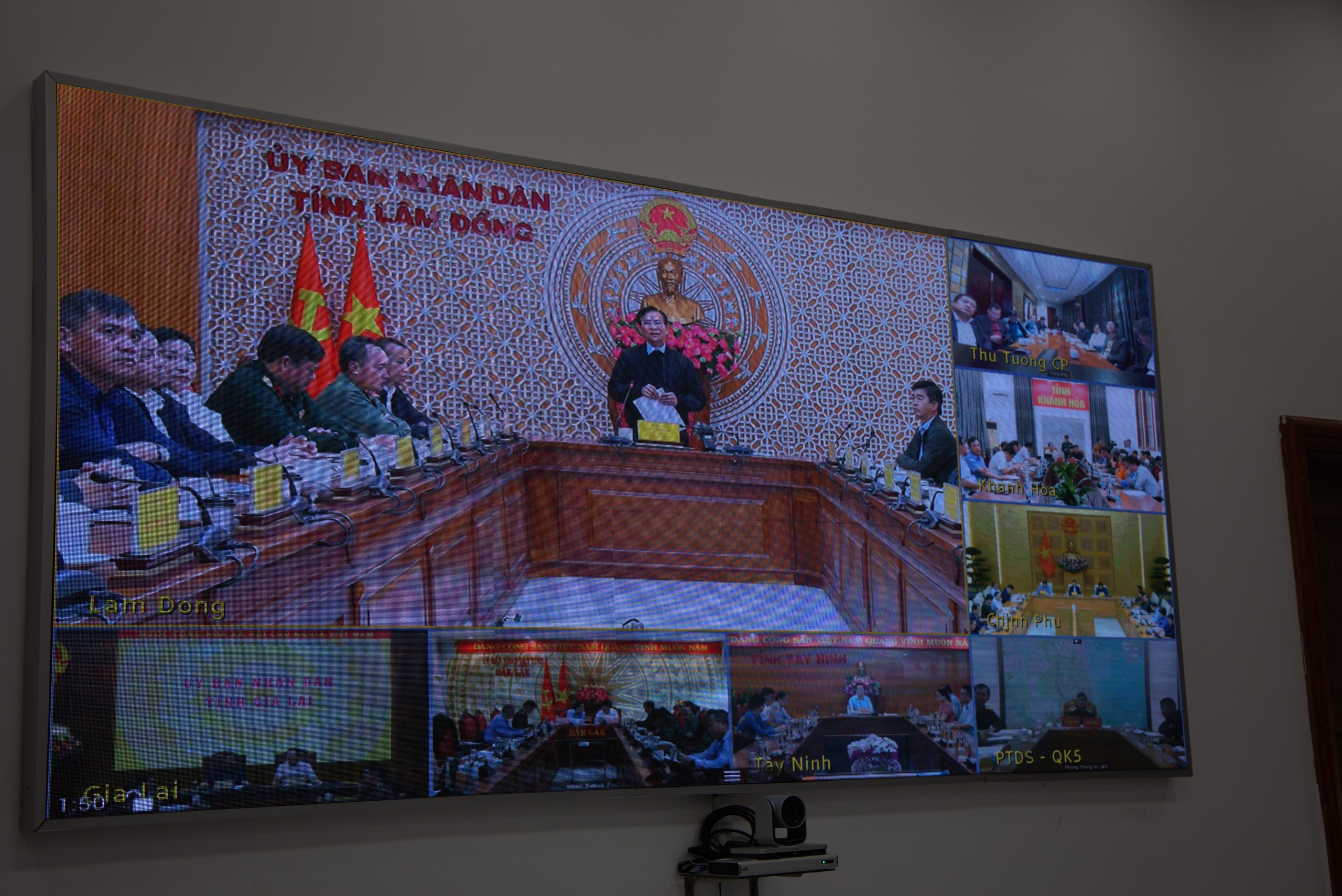 Các điểm cầu Trụ sở Chính phủ, Gia Lai, Khánh Hoà, Đắk Lắk, Lâm Đồng, Tây Ninh và Quân khu 5 tham gia họp trực tuyến