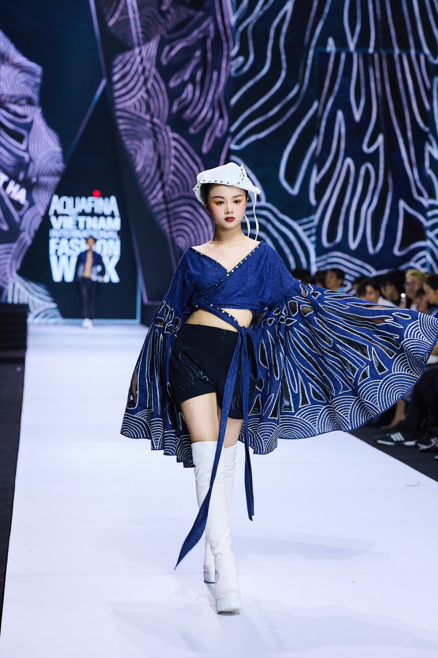 Mẫu nhí Maika Ngọc Khánh gây ấn tượng khi tham gia trình diễn BST Nước đầu nguồn của NTK Vũ Việt Hà, kết màn cho Tuần lễ thời trang quốc tế Việt Nam mùa thứ 15.