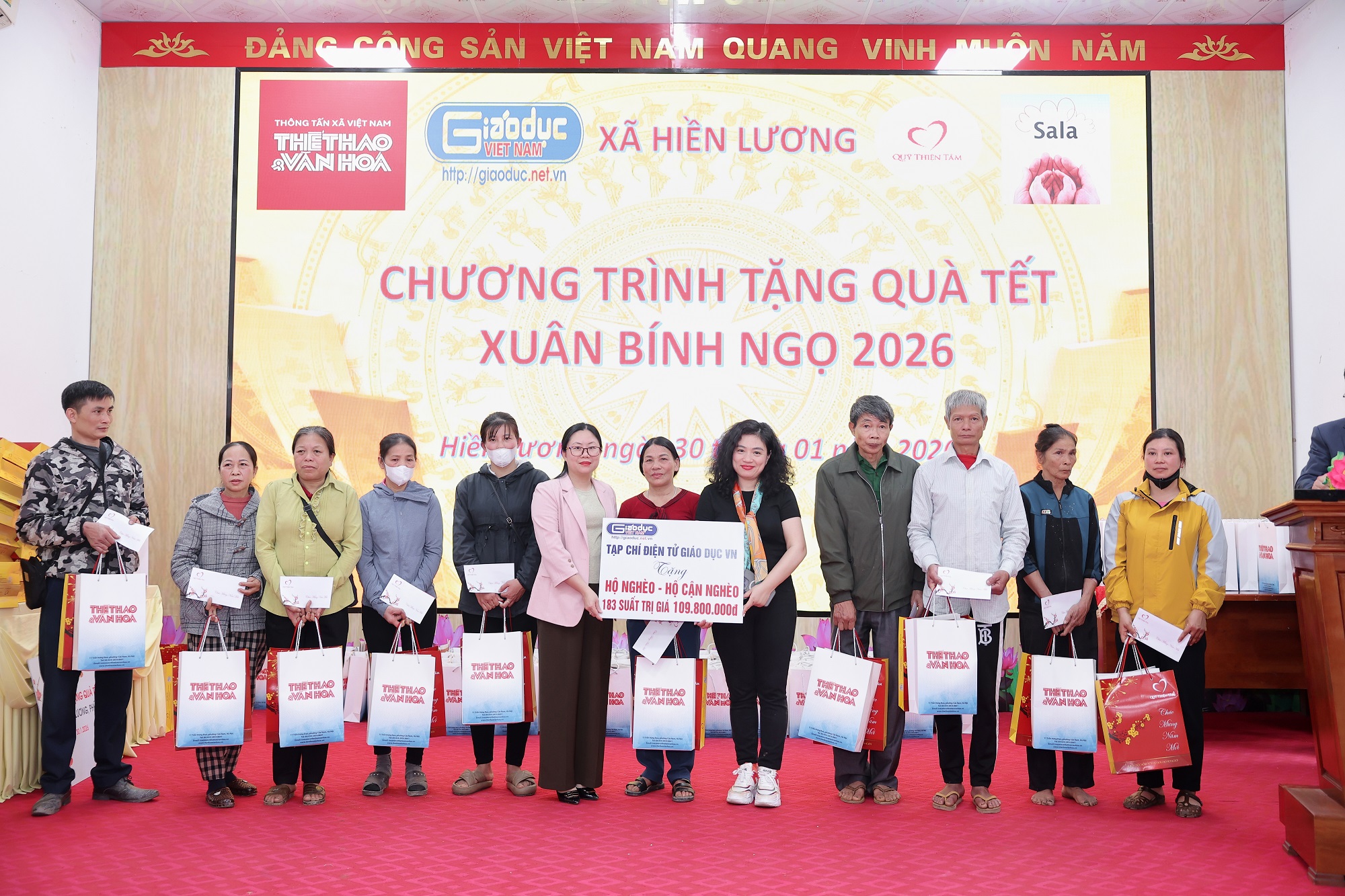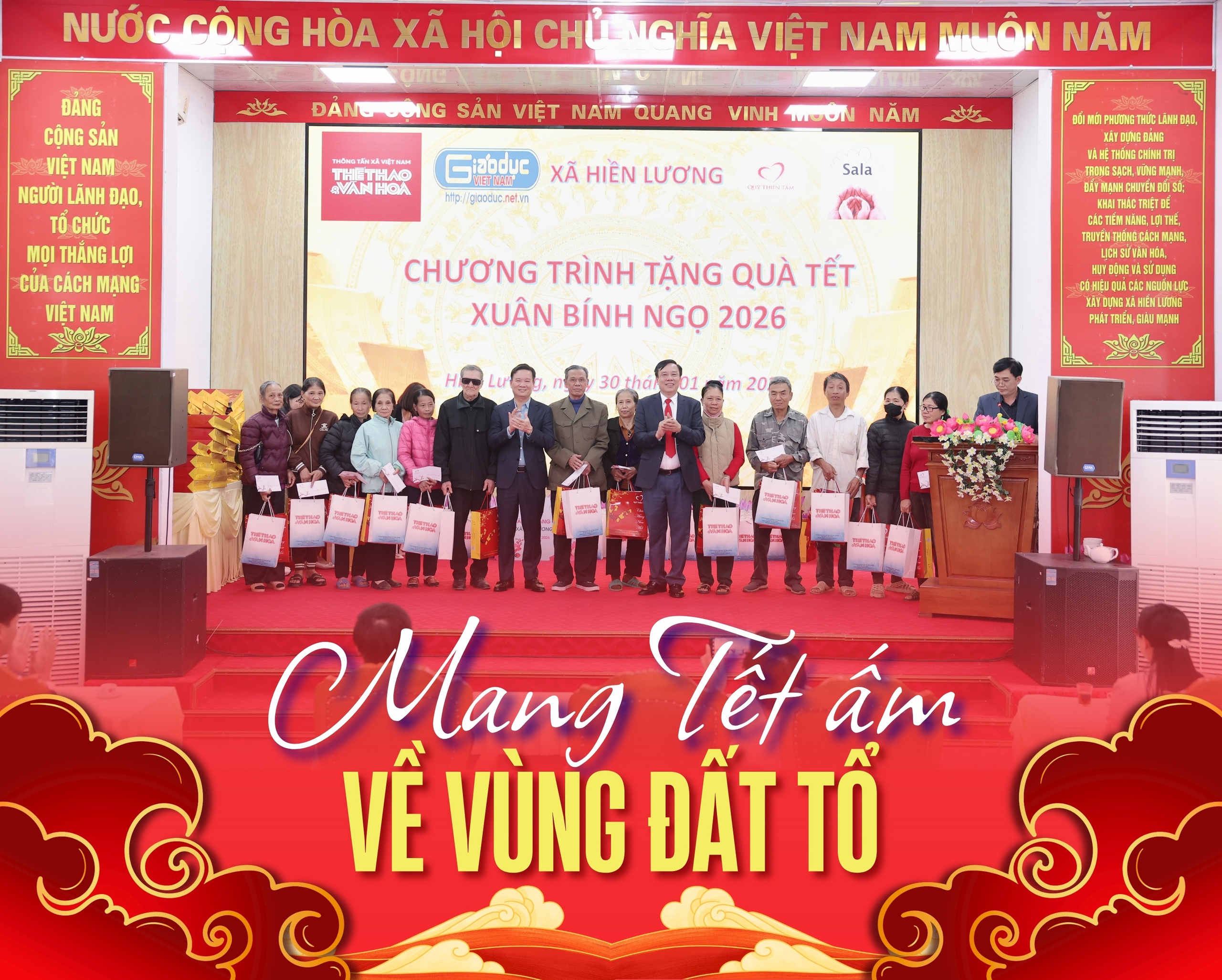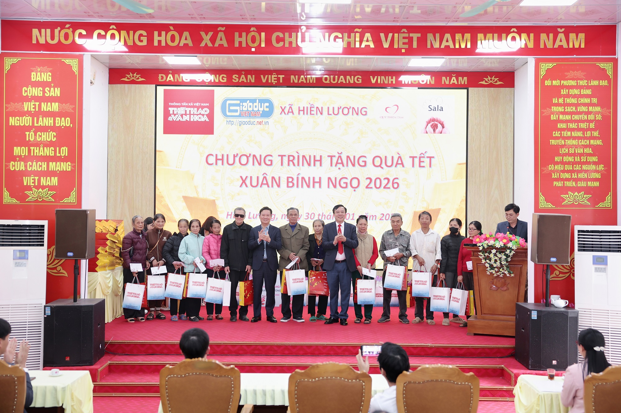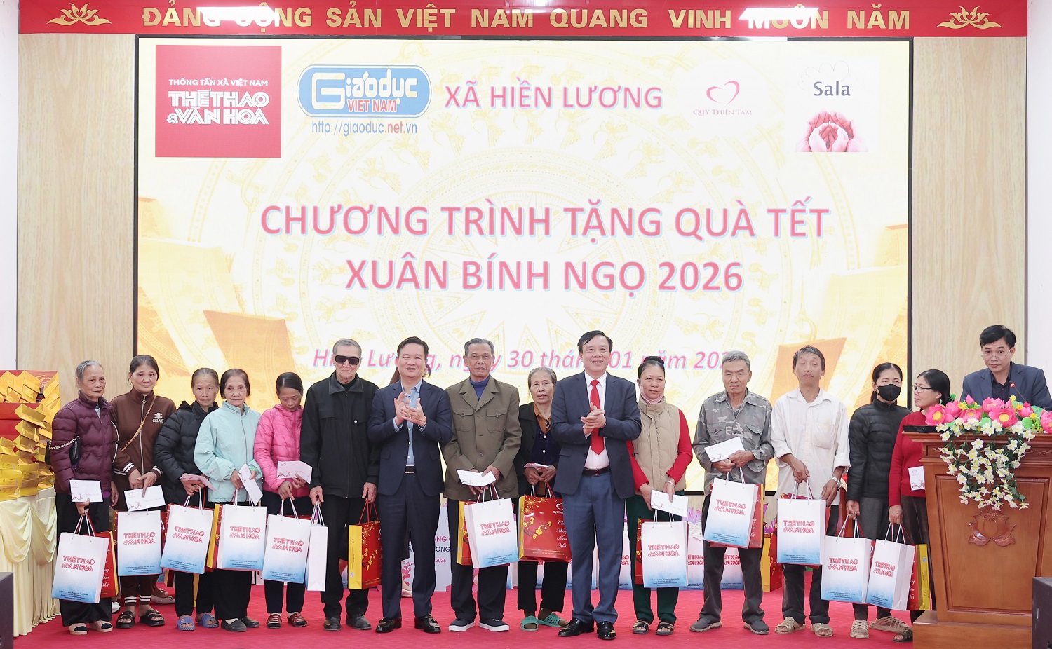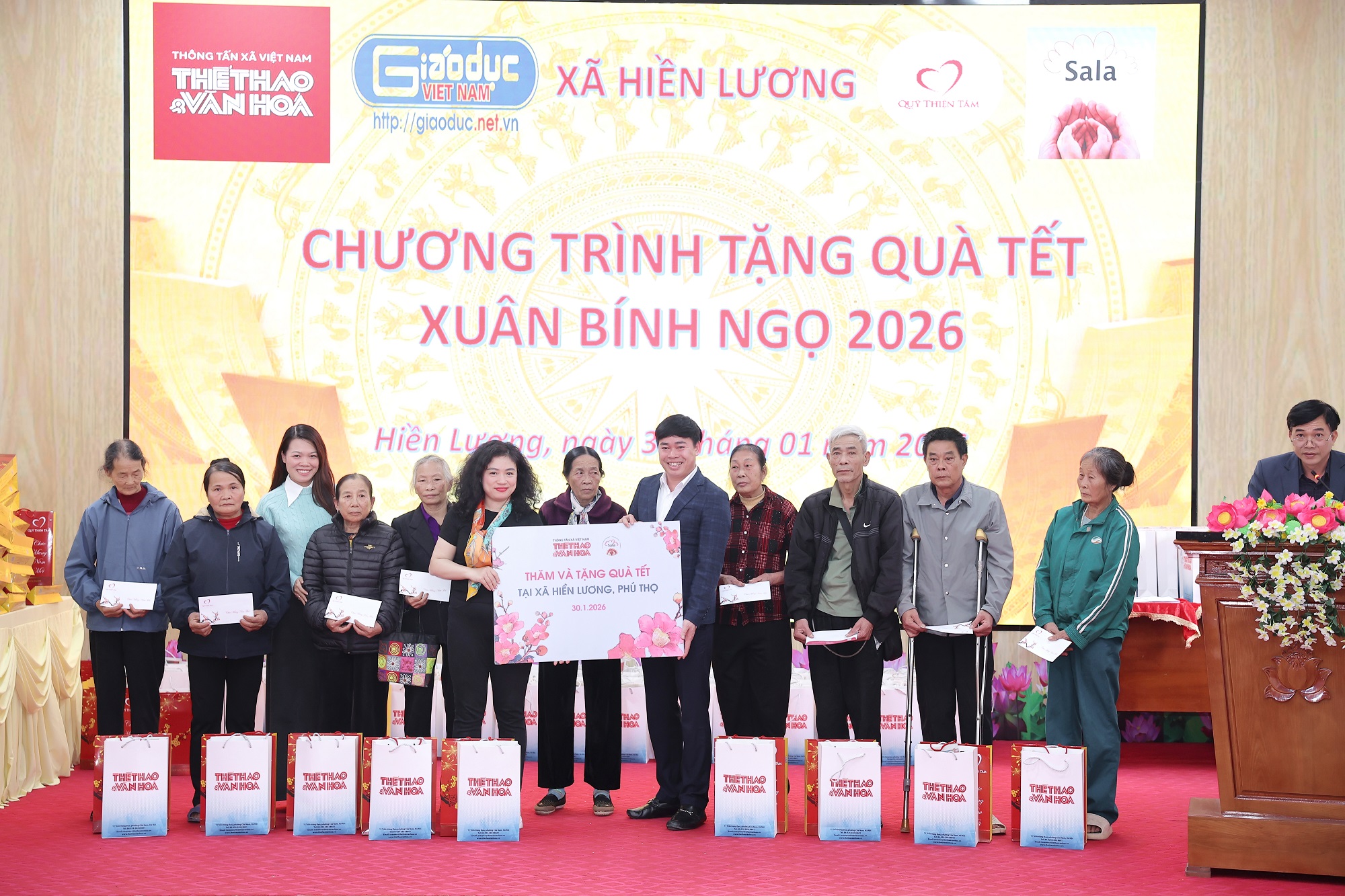 Chiều ngày 30/1/2026, tại xã Hiền Lương (tỉnh Phú Thọ), Báo Thể thao và Văn hóa (TTXVN) đã phối hợp cùng Ủy ban nhân dân xã tổ chức chương trình trao tặng quà Tết cho các hộ nghèo và hộ có hoàn cảnh đặc biệt khó khăn.