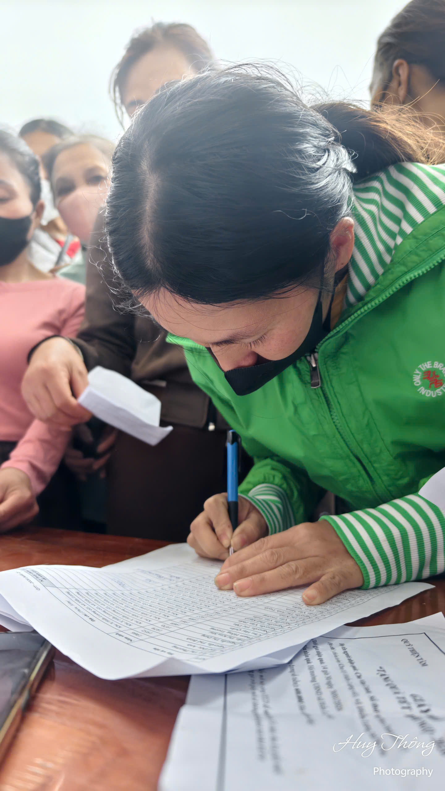 Người dân thuộc hộ nghèo, hộ có hoàn cảnh khó khăn ký xác nhận theo danh sách trước khi nhận quà tặng