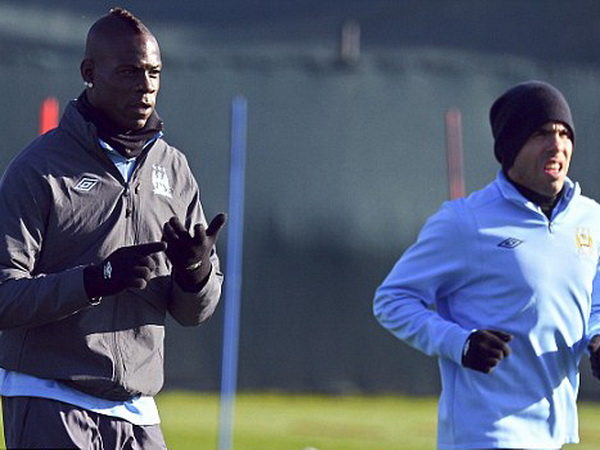 Mario Balotelli (trái) và Tevez chuẩn bị cho trận đối đầu với Ajax- Ảnh Getty